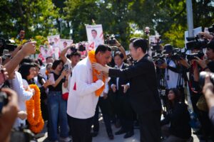 “ขอส่งกำลังใจให้ผู้สมัคร สส.กทม. ของเราทุกคน ก่อนจะขึ้นรถแห่มุ่งหน้าลงไปหาพี่น้องประชาชนทั่วกรุงเทพนะครับ