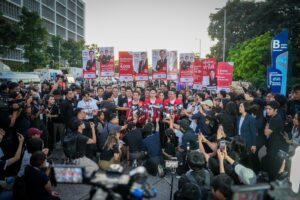 ส่วนทางด้านนายสุริยะ กล่าวตอบถึงเป้าหมาย สส.ในวันนี้ว่า เรายังยืนยันว่าเราจะทำให้ได้เต็มที่ เพื่อให้ได้ สส.ถึง 200 คนให้ได้ พร้อมกล่าวติดตลกว่า “ถ้ามากกว่านั้นจะกลัวไม่มีเพื่อน”