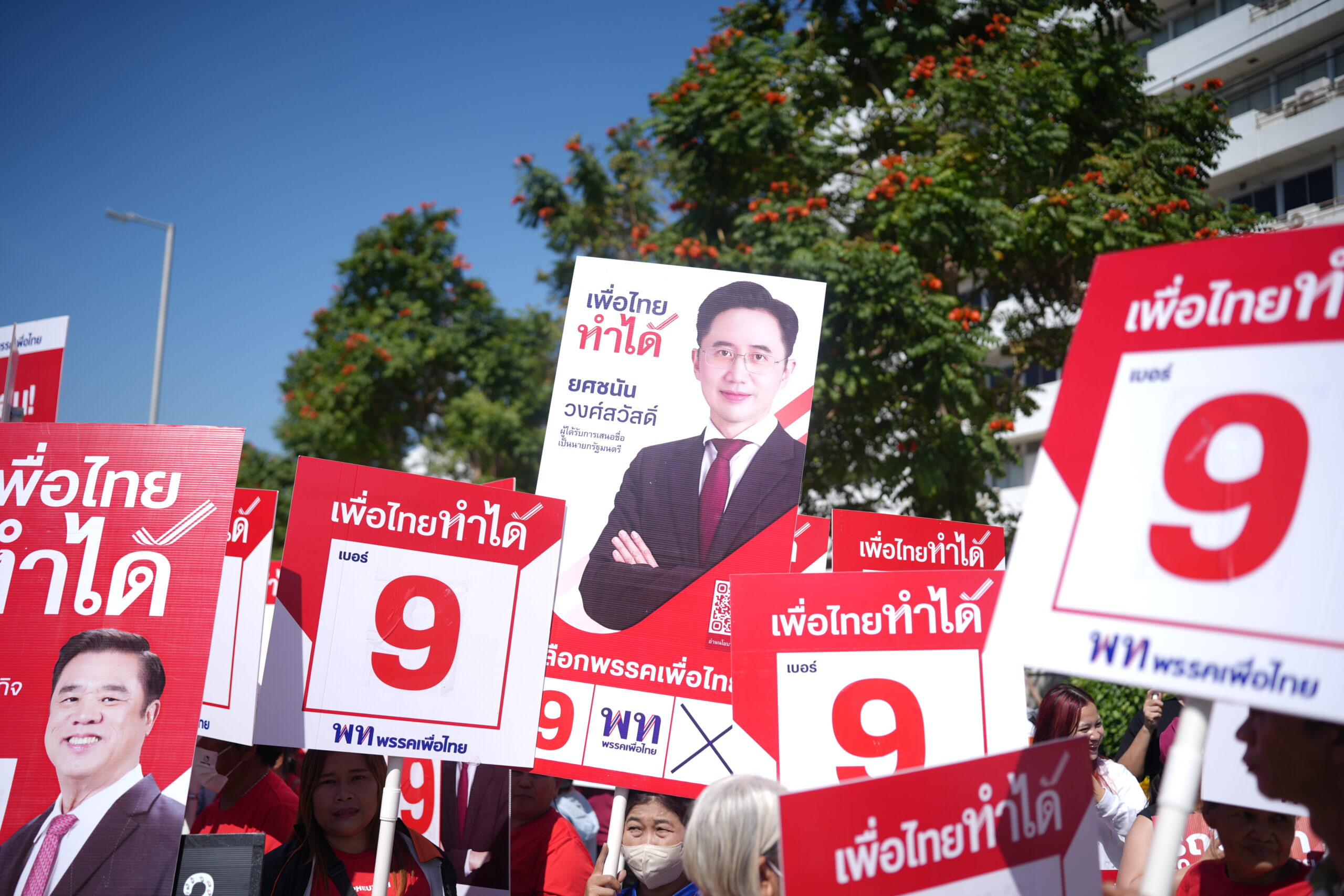 ศ.ดร.ยศชนัน วงศ์สวัสดิ์ ผู้ได้รับการเสนอชื่อเป็นนายกรัฐมนตรี พร้อมด้วยนายจุลพันธ์ อมรวิวัฒน์ หัวหน้าพรรคเพื่อไทยและผู้ได้รับการเสนอชื่อเป็นนายกรัฐมนตรี และ นายสุริยะ จึงรุ่งเรืองกิจ ผู้อำนวยการการเลือกตั้งพรรคเพื่อไทยและผู้ได้รับการเสนอชื่อเป็นนายกรัฐมนตรี กล่าวให้สัมภาษณ์ที่โรงแรมเซ็นทารา ไลฟ์ ศูนย์ราชการและคอนเวนชันเซ็นเตอร์ แจ้งวัฒนะ ซึ่งคณะกรรมการการเลือกตั้ง (กกต.) กำหนดเป็นสถานที่รับสมัครรับเลือกตั้งสมาชิกสภาผู้แทนราษฎรแบบบัญชีรายชื่อ (ส.ส.บัญชีรายชื่อ) และให้พรรคการเมืองแจ้งรายชื่อบุคคลที่จะแต่งตั้งเป็นนายกรัฐมนตรี โดยในการจับสลากหมายเลข สส.บัญชีรายชื่อนั้น นายจุลพันธ์ อมรวิวัฒน์ ตัวแทนพรรคเพื่อไทยจับหมายเลขได้หมายเลข 9