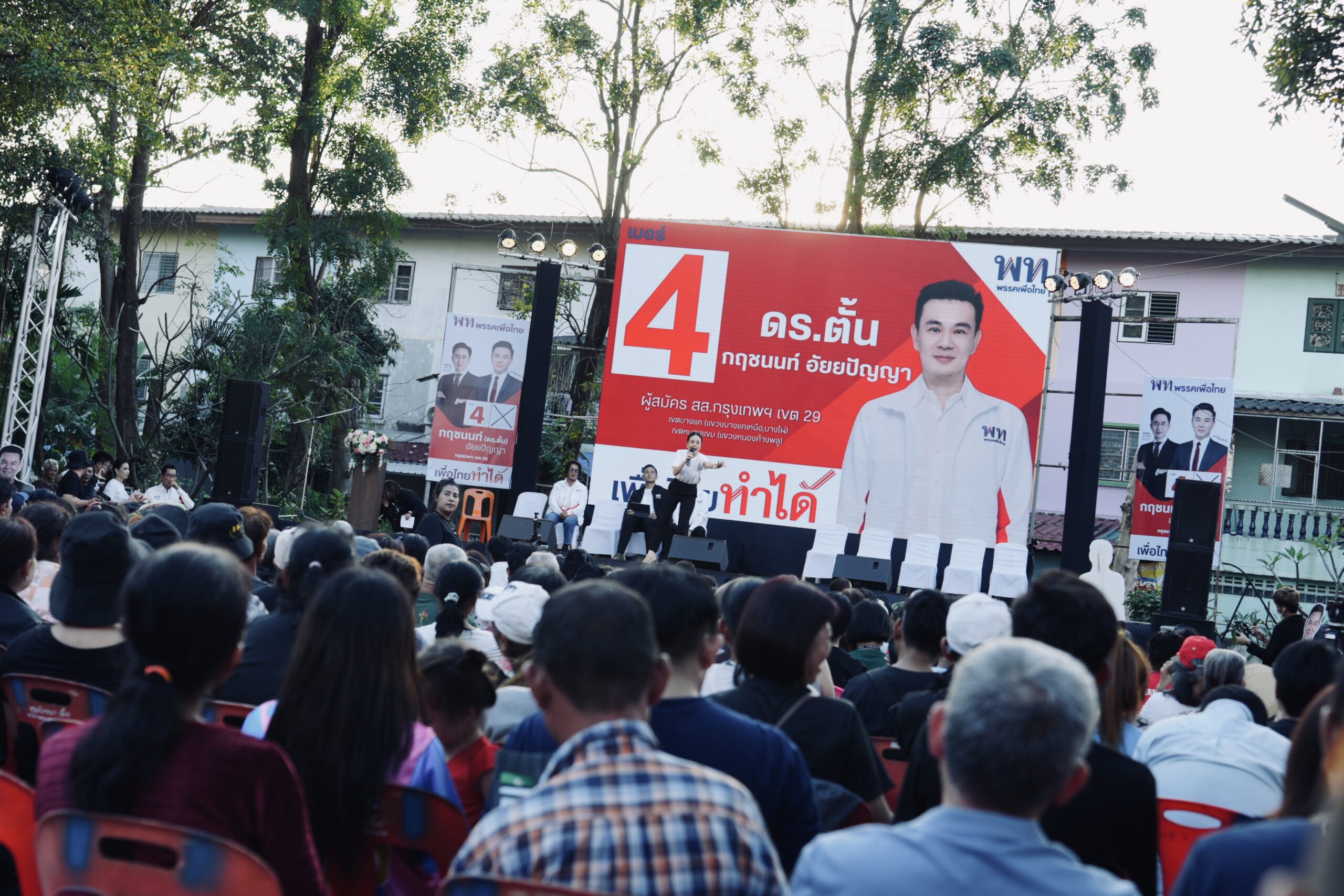 วันที่ 28 ธันวาคม 2568 ที่ลานเอนกประสงค์ หมู่บ้านพงษ์ศิริชัย 4 พรรคเพื่อไทยได้จัดปราศรัยย่อยเวทีแรกในพื้นที่ กทม. โดยเริ่มต้นที่เขต 29 บางแค (เฉพาะแขวงบางไผ่-แขวงบางแคเหนือ) หนองแขม (เฉพาะแขวงหนองค้างพลู) ซึ่งมี กฤชนนท์ อัยยปัญญา หรือ ดร.ตั้น เบอร์ 4 อดีตผู้ช่วยรัฐมนตรีประจำกระทรวงคมนาคม เป็นผู้สมัคร สส.
