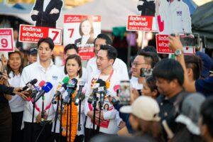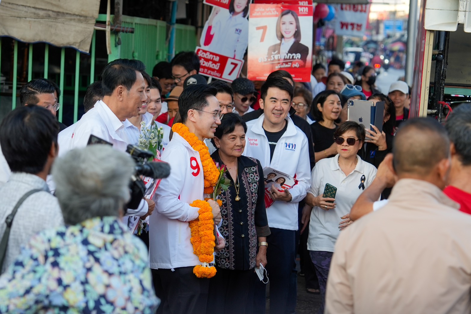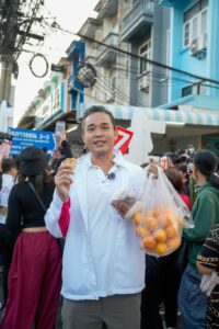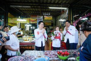 “ยศชนัน-จุลพันธ์” ควงผู้สมัคร กทม.เพื่อไทย เดินตลาดเช้าวัดเกาะ สื่อสารนโยบายแก้ปากท้อง ร่วมจิบกาแฟยามเช้ากับคนมาจ่ายตลาด – เจอป้าสุดปลื้ม ขอหอมแก้ม อ.เชน หน่อย