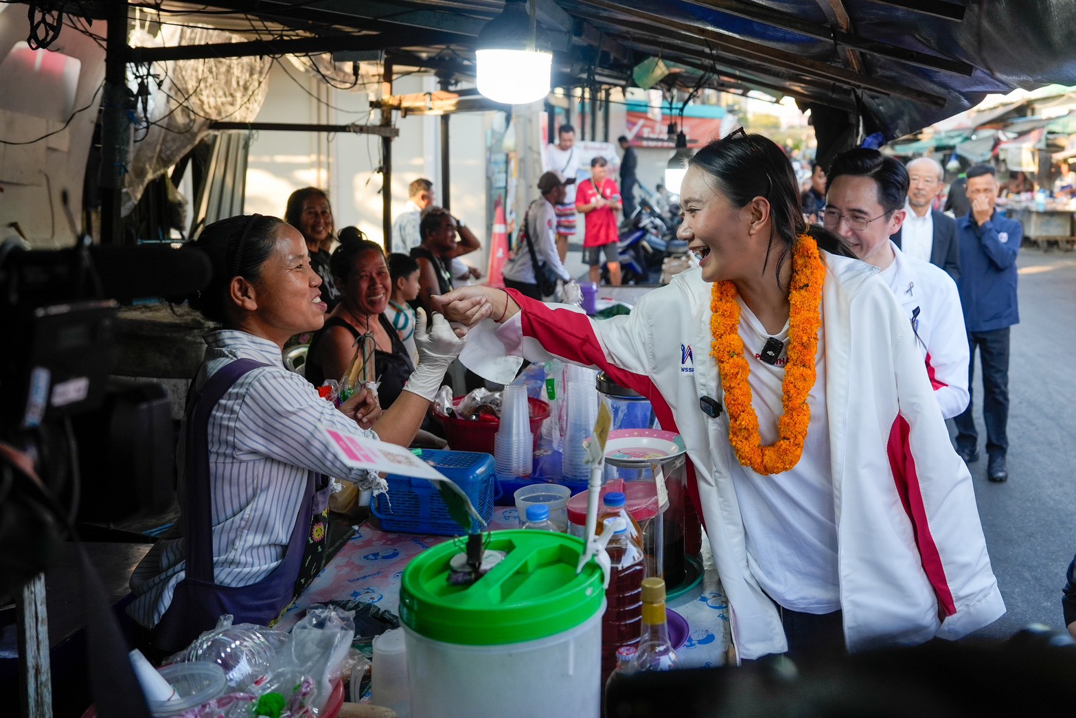 สำหรับทีมพรรคเพื่อไทยที่ร่วมคณะลงพื้นที่ ประกอบไปด้วย นายกิตติรัตน์ ณ ระนอง อดีตรองนายกฯ , นายพงศ์กวิน จึงรุ่งเรืองกิจ รองหัวหน้าพรรค และผู้สมัคร สส.แบบบัญชีรายชื่อ, นายชนินทร์ รุ่งธนเกียรติ รองเลขาธิการฯ และผู้สมัคร สส.แบบบัญชีรายชื่อ, นายดนุพร ปุณณกันต์ กรรมการบริหารพรรค และ ผู้สมัคร สส.บัญชีรายชื่อ, นางสาวธีราภา ไพโรจน์กุล ผู้สมัคร สส.แบบบัญชีรายชื่อ, นางญาณิกา เทียนทอง ผู้สมัคร สส.แบบบัญชีรายชื่อ, นายประเมศฐ์ พิชญ์พันธ์เดชา ผู้สมัคร สส.แบบบัญชีรายชื่อ, นายพีรวิชญ์ ขันติศุข ผู้สมัคร สส.แบบบัญชีรายชื่อ, น.ส.เพ็ญพิสุทธิ์ จินตโสภณ, ผู้สมัคร สส.กทม.เบอร์ 2 เขต 3