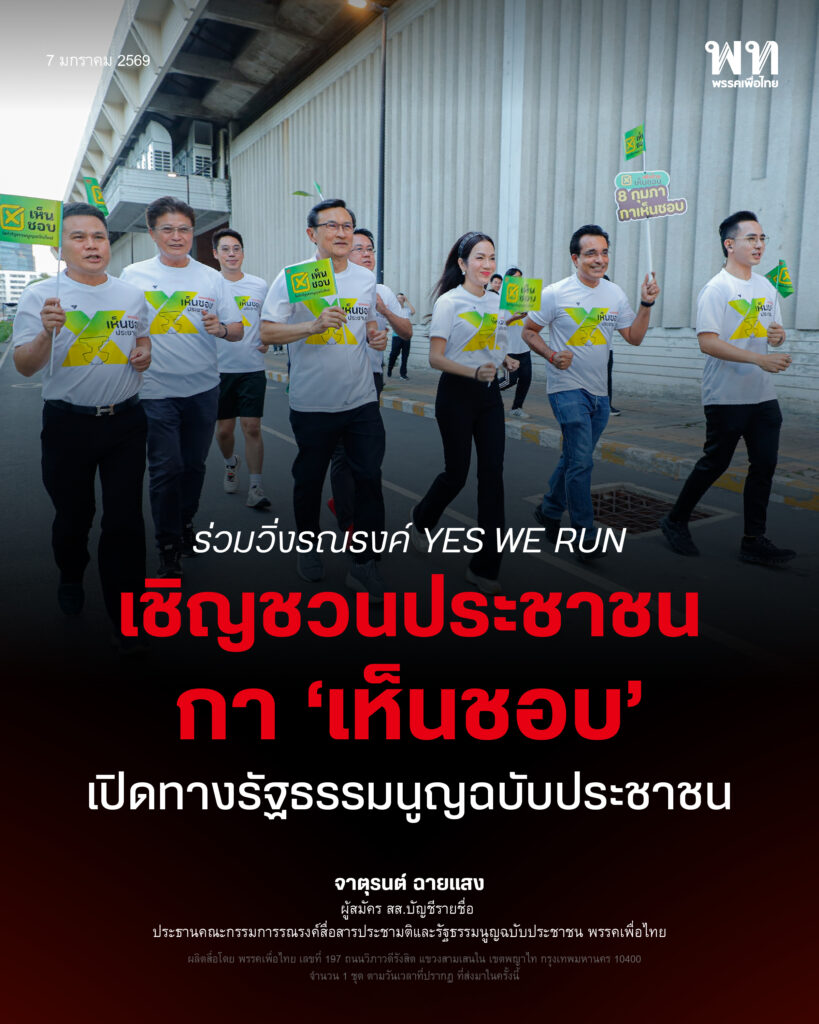 ‘เพื่อไทย’ วิ่งรณรงค์ YES WE RUN เชิญชวนประชาชนกา ‘เห็นชอบ’ เปิดทางรัฐธรรมนูญฉบับประชาชน