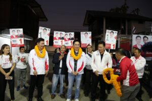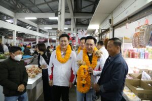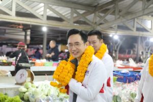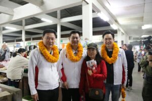 ‘เชน-ยศชนัน’ บุกตลาดเช้าสารภี พ่อค้าแม่ค้าแห่มอบพวงมาลัยแคบหมูต้อนรับคึกคัก ลั่นจะพลิกฟื้นเชียงใหม่ เริ่มต้นที่อากาศสะอาดและปากท้องพี่น้องเกษตรกร