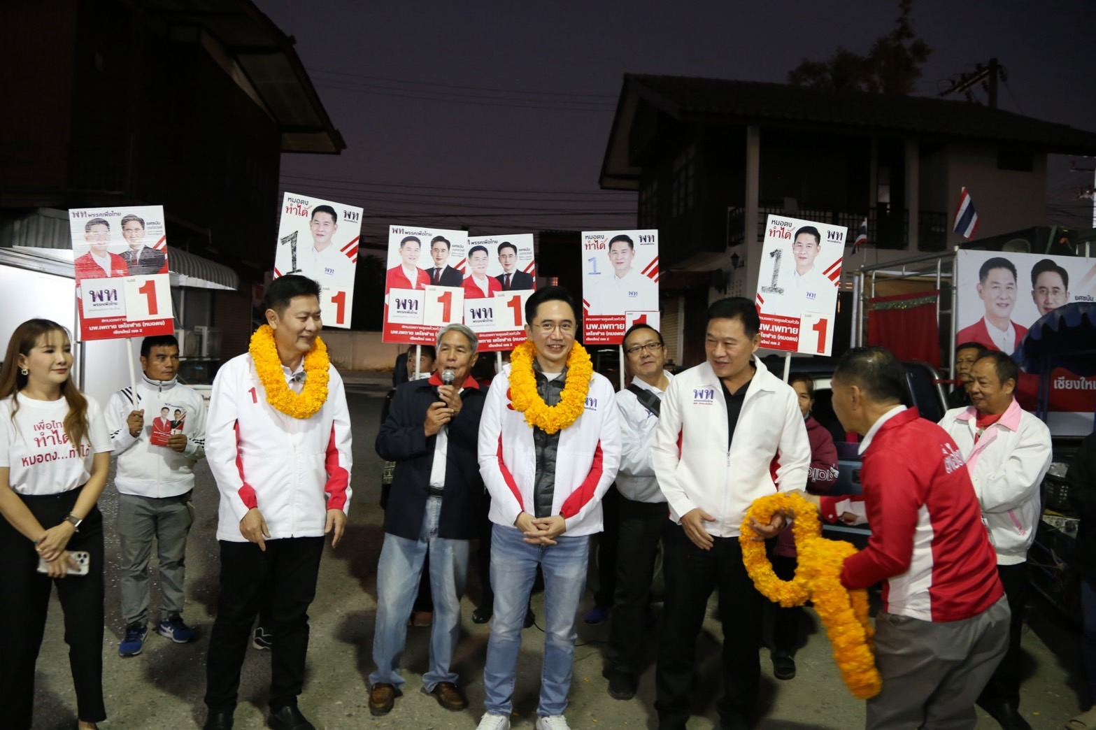 วันนี้ (9 มกราคม) ศ.ดร. ยศชนัน วงศ์สวัสดิ์ แคนดิเดตนายกรัฐมนตรี พรรคเพื่อไทย นำ นพ.เพทาย เตโซฬาร ผู้สมัคร สส. จังหวัดเชียงใหม่ เขต 2 และทีมงาน พบปะพ่อค้าแม่ค้าและประชาชนที่จ่ายตลาดสุขาภิบาล (ยางเนิ้ง) อำเภอสารภี จังหวัดเชียงใหม่ บรรยากาศเป็นไปอย่างคึกคัก มีพ่อค้าแม่ค้ามามอบพวงมาลัยดอกดาวเรืองและพวงมาลัยแคบหมู