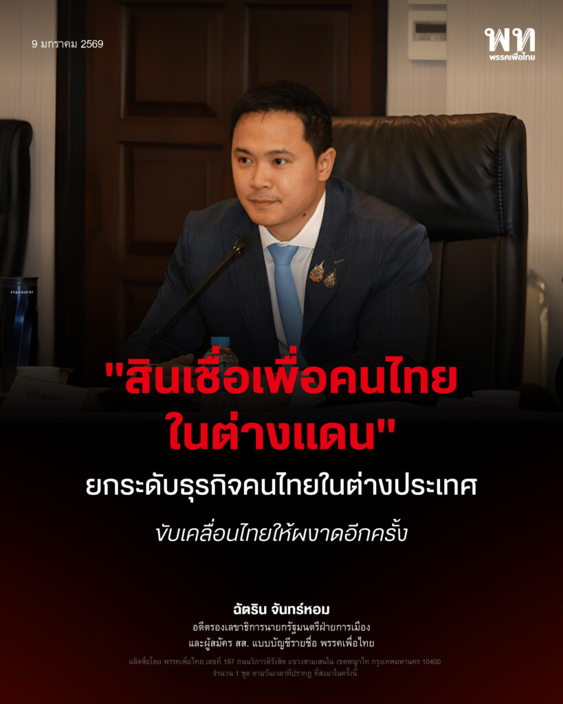 “เพื่อไทย” ชู “สินเชื่อเพื่อคนไทยในต่างแดน” ยกระดับธุรกิจคนไทยในต่างแดน ขับเคลื่อนประเทศให้ผงาดอีกครั้ง