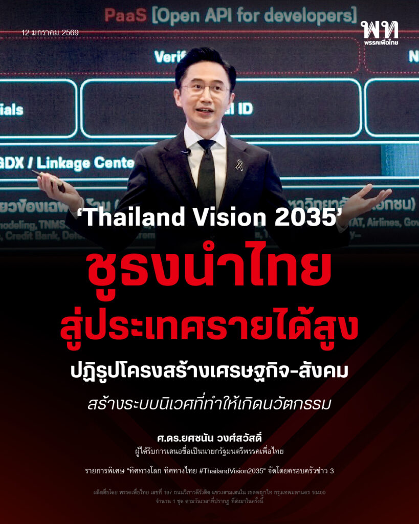 ศ.ดร.ยศชนัน แสดงวิสัยทัศน์ “Thailand Vision 2035” ชูธงนำไทยสู่ประเทศรายได้สูง ปฏิรูปโครงสร้างเศรษฐกิจ-สังคมด้วยเทคโนโลยี พร้อมแก้หนี้เร่งด่วน