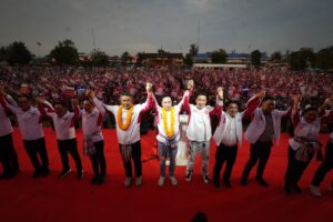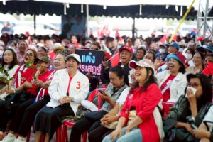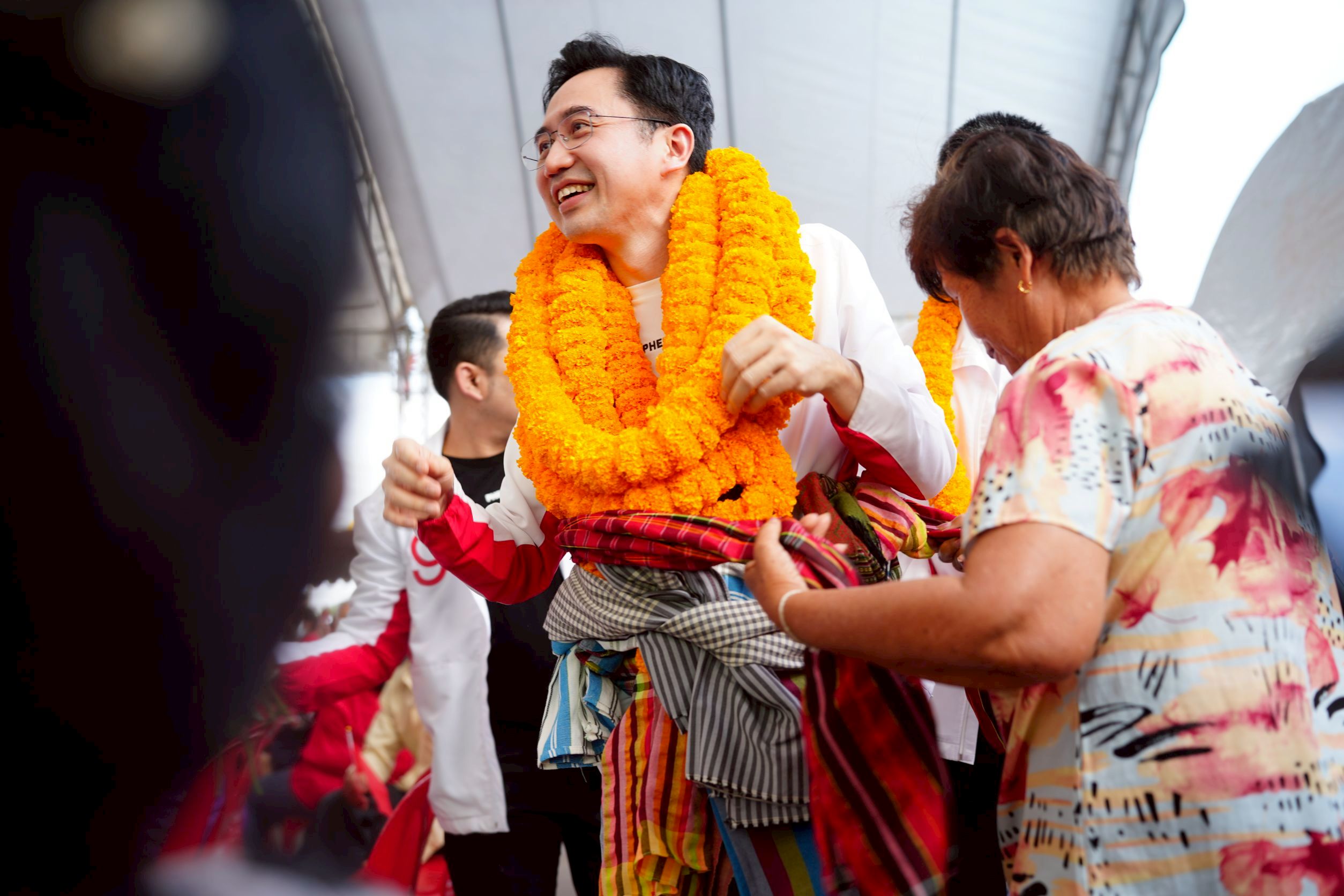 ทั้งนี้ บรรยากาศโดยรอบเวทีปราศรัยเต็มไปด้วยความอบอุ่น ประชาชนต่างนำป้ายไฟเชียร์หมายเลข 9 และป้ายเชียร์ 3 แคนดิเดตนายกรัฐมนตรีมาร่วมให้กำลังใจ พร้อมมอบพวงมาลัยดอกดาวเรือง ดอกไม้ และผูกผ้าขาวม้าต้อนรับ ศ.ดร.ยศชนัน จนล้นคอ