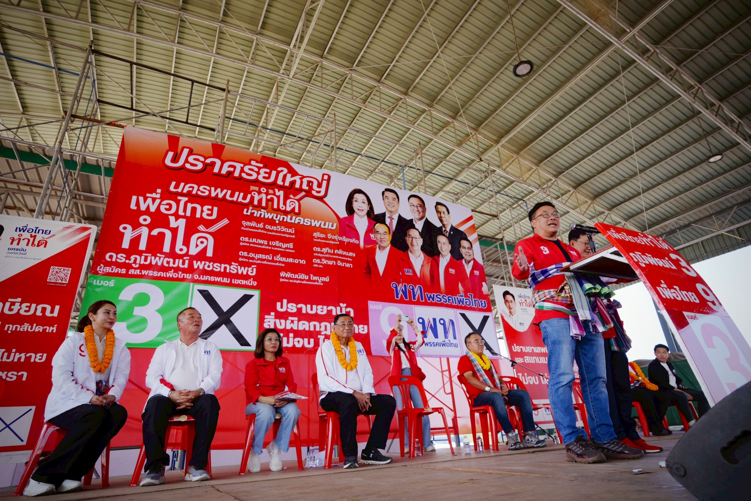 ‘นครพนม’ คึกคัก ‘จุลพันธ์’ ปลุกใจพี่น้องเลือกพรรคเพื่อไทยยกจังหวัด ด้าน ‘มนพร’ ย้ำทุกครั้งที่พรรคเพื่อไทยถูกกระทำทางการเมือง เราอยู่ได้เพราะมีพี่น้องเป็นผนังทองแดง-กำแพงเหล็ก คอยหนุนหลัง สู้กับอำนาจนอกระบบ ขอให้เลือกเพื่อไทย 2 ใบทุกเขต