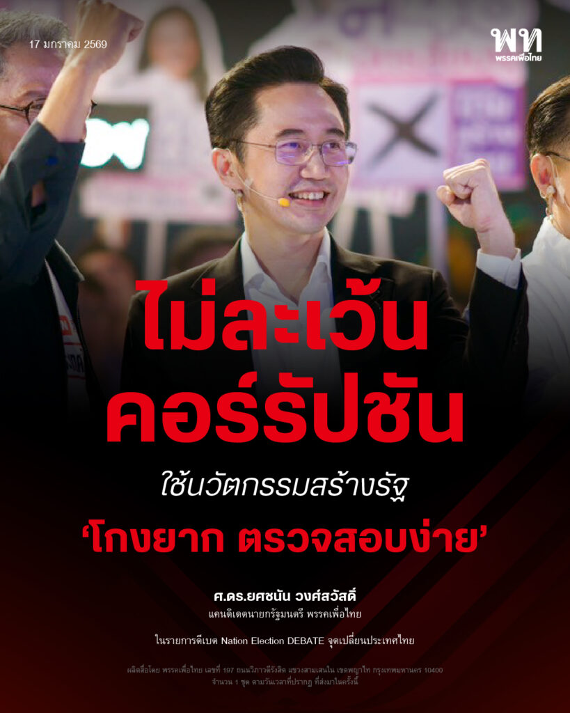ขณะเดียวกัน พรรคเพื่อไทยจะเร่งผลักดัน แพลตฟอร์มปราบโกง ผ่านระบบ Corruption Tracking เพื่อเพิ่มความโปร่งใสและตรวจสอบการใช้งบประมาณภาครัฐ ซึ่งถือเป็นแนวทางเบื้องต้นที่พร้อมดำเนินการทันที