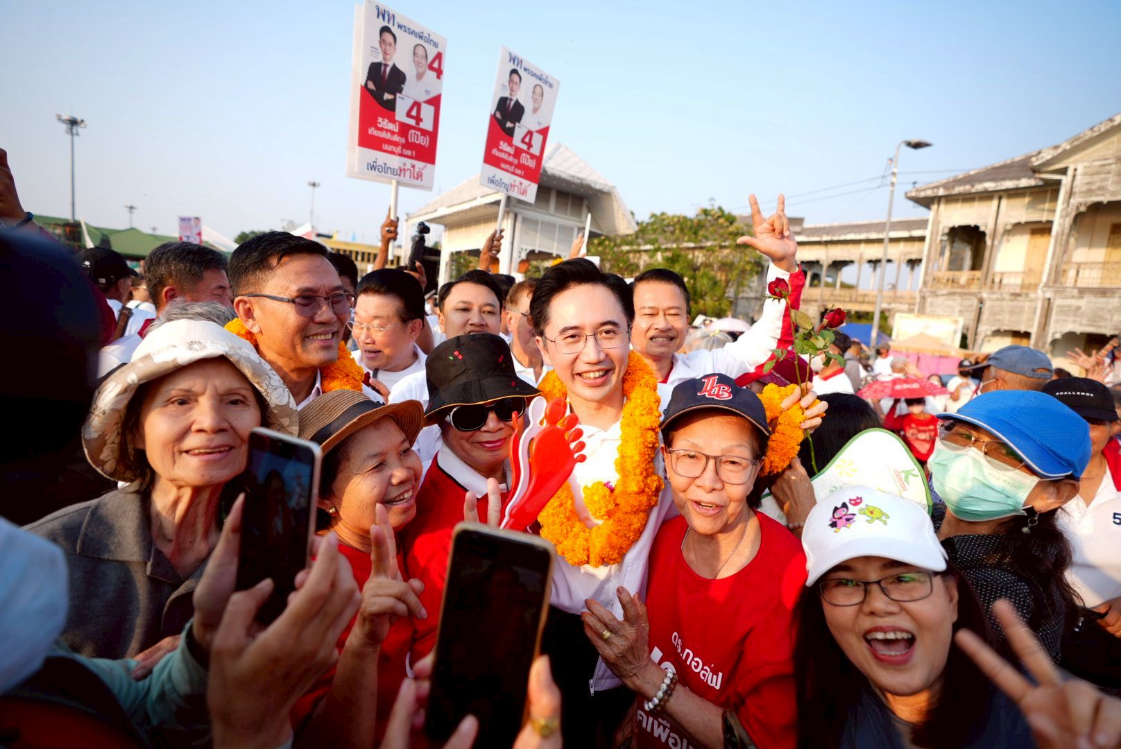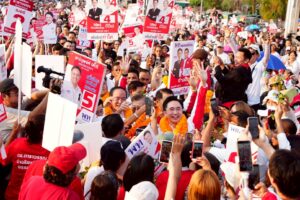 ทั้งนี้ ภายใน 3 เดือน เราจะเอาคนติดยาออกไปบำบัดให้หมด และไม่เกิน 6 เดือน จะทลายรังยาเสพติดทั้งระบบ ไม่ว่าไปประเทศไหน เราก็จะตามไปทำลายที่ประเทศนั้นด้วย ซึ่งต้องใช้การทูตเป็นตัวนำ รัฐบาลต้องทางที่เข้ามาได้การทำความเข้าใจกับประเทศต่าง ๆ เราต้องทำนโยบายทางการทูตที่เราจะทำ เราไม่สามารถทำได้ ถ้าไม่มี สส. ทั้ง 8 คน เข้าไปอยู่กับตนเองในสภา ดังนั้น ขอให้เลือกพรรคเพื่อไทยทั้ง 8 เขต