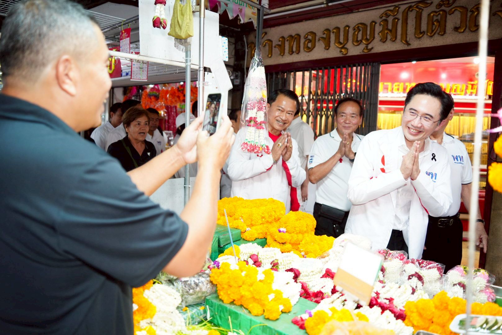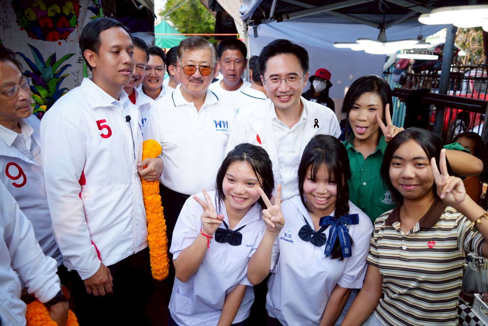 โดยมีพ่อค้าแม่ขายและผู้จับจ่ายใช้สอย ขอถ่ายรูปและมอบดอกไม้ให้กำลังใจเป็นจำนวนมาก จากนั้นได้มียูทูปเบอร์ชื่อดัง TheFadd นำพวงมาลัยหมูแดงมามอบให้ ระหว่างที่ ศ.ดร.ยศชนัน จากนั้นเดินมาขึ้นเวทีปราศรัย ท่ามกลางผู้มาร่วมฟังมากกว่า 5,000 คน