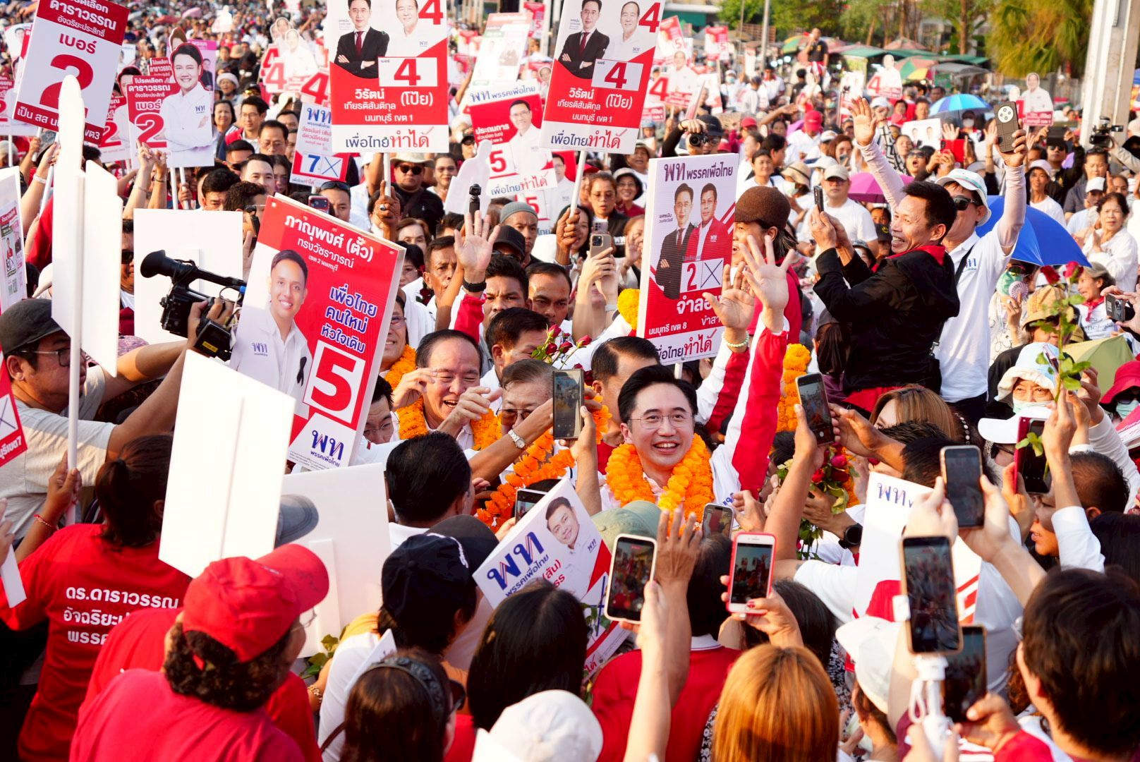 วันที่ 19 มกราคม 2569 ศ.ดร.ยศชนัน วงศ์สวัสดิ์ แคนดิเดตนายกรัฐมนตรี พรรคเพื่อไทย พร้อมด้วยนายพงศ์กวิน จึงรุ่งเรืองกิจ, นายจักรพงษ์ แสงมณี รองหัวหน้าพรรค และผู้สมัคร สส. บัญชีรายชื่อ พรรคเพื่อไทย, นายสมนึก ธนเดชากุล นายกเทศมนตรีนครนนทบุรี ขึ้นรถแห่หาเสียงช่วยผู้สมัคร สส.นนทบุรีทั้ง 8 เขต ประกอบด้วย นายวิรัตน์ เกียรติสันติกุล เขต 1 เบอร์ 4, นายภาณุพงศ์ ทรงวัชราภรณ์ ผู้สมัคร เขต 2 เบอร์ 5, น.ส.ดาราวรรณ อัจฉริยะประสิทธิ์ เขต 3 เบอร์ 2, นายมนตรี ตั้งเจริญถาวร เขต 4 เบอร์ 5, นายวัชยธนันท์ อัศวนิโครธร เขต 5 เบอร์ 7, นายประถมการ อ่วมอ่อง เขต 6 เบอร์ 5, นายภณณัฏฐ์ ศรีอินทร์สุทธิ์ เขต 7 เบอร์ 3 และนายจำลอง ขำสา เขต 8 เบอร์ 2 ที่ตลาดท่าน้ำนนทบุรี จ.นนทบุรี