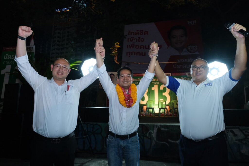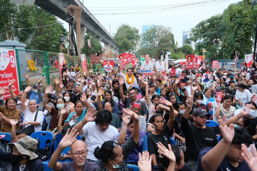 เวทีปราศรัยเพื่อไทย กทม. คึกคัก “ห้วยขวางทำได้” ทีมเพื่อไทยอ้อนขอคะแนน ประชาชนตอบรับนโยบายผู้สมัครอยู่พื้นที่