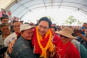 ประเด็นแรกคือเรื่อง การเกษตร เราจะประกันกำไรให้เกษตรกร 30% ใครที่ทำนาต้องได้กำไรแน่นอน และในฐานะที่ผมเป็นนักวิทยาศาสตร์และวิศวกร ผมจะเข้ามาแก้ปัญหาดินเค็มและระบบน้ำที่เรื้อรังมานานให้จบสิ้นไป พร้อมสนับสนุนเครื่องจักรกลการเกษตรและแปรรูปสินค้าเพื่อเพิ่มรายได้