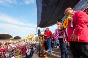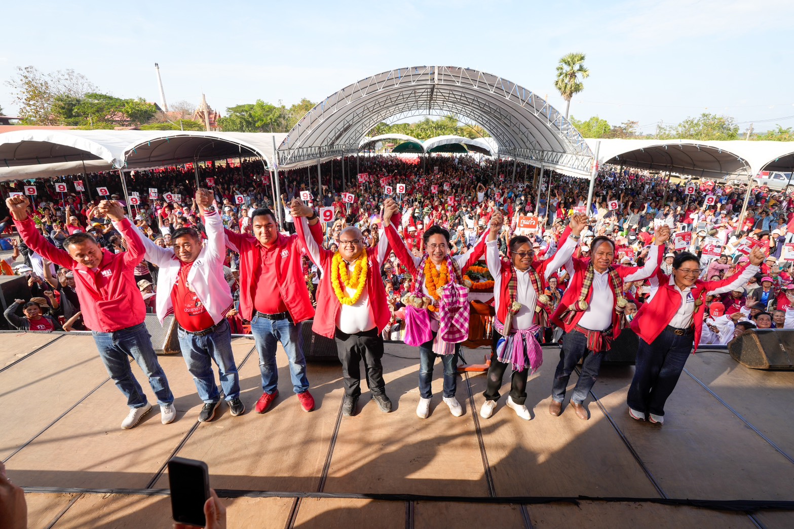 ทุ่งศรีเมืองทะลัก! คนเสื้อแดงนับหมื่นร่วมพลังต้อนรับ “อ.เชน-เพื่อไทย” ประกาศกวาด สส.ยกจังหวัด ผุดนโยบายล้างหนี้-รัฐช่วยจ่าย 70% ด้าน “ณัฐวุฒิ” โต้เดือดปมเพื่อไทยทอดทิ้งคนเสื้อแดง ยกตัวอย่างเยียวยาเหตุการณ์ ปี 53 ย้ำเลือกตั้งรอบนี้ต้องกา 2 ใบส่งใจให้ “ทักษิณ” ขณะที่ “สุทิน” ปราศรัยเดือดซัด “อนุทิน” มือไม่ถึงทำชาติทรุด พร้อมเตือนระวังกระสุนดินดำช่วงโค้งสุดท้าย