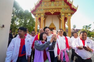 เวลา 13.00 น. (วันนี้ 22 ม.ค.69) ที่วัดโพนงาม อำเภอสระใคร จ.หนองคาย ศ.ดร.ยศชนัน วงศ์สวัสดิ์ แคนดิเดตนายกรัฐมนตรีพรรคเพื่อไทย นายณัฐวุฒิ ใสยเกื้อ ผู้อำนวยการครอบครัวเพื่อไทย พร้อมคณะลงพื้นที่พบปะประชาชน เพื่อช่วยนายกฤษฎา ตันเทอดทิตย์ ผู้สมัคร สส. จังหวัดหนองคาย เขต 1 เบอร์ 3 หาเสียง โดยทันทีที่เดินทางมาถึง ศ.ดร.ยศชนัน ได้นั่งรถมอเตอร์ไซด์พ่วงข้าง จากบริเวณด้านหน้าพื้นที่ปราศรัยเข้ามายังบริเวณเวที เนื่องจากมีประชาชนมาฟังการปราศรัยจำนวนมากทำให้การจราจรติดขัด และได้เดินทักทายพี่น้องประชาชนที่มารอให้การตอนรับอย่างอบอุ่น โดยประชาชนได้มอบดอกไม้ พวงมาลัยดอกดาวเรือง แหนม หมูยอ และแคปหมู