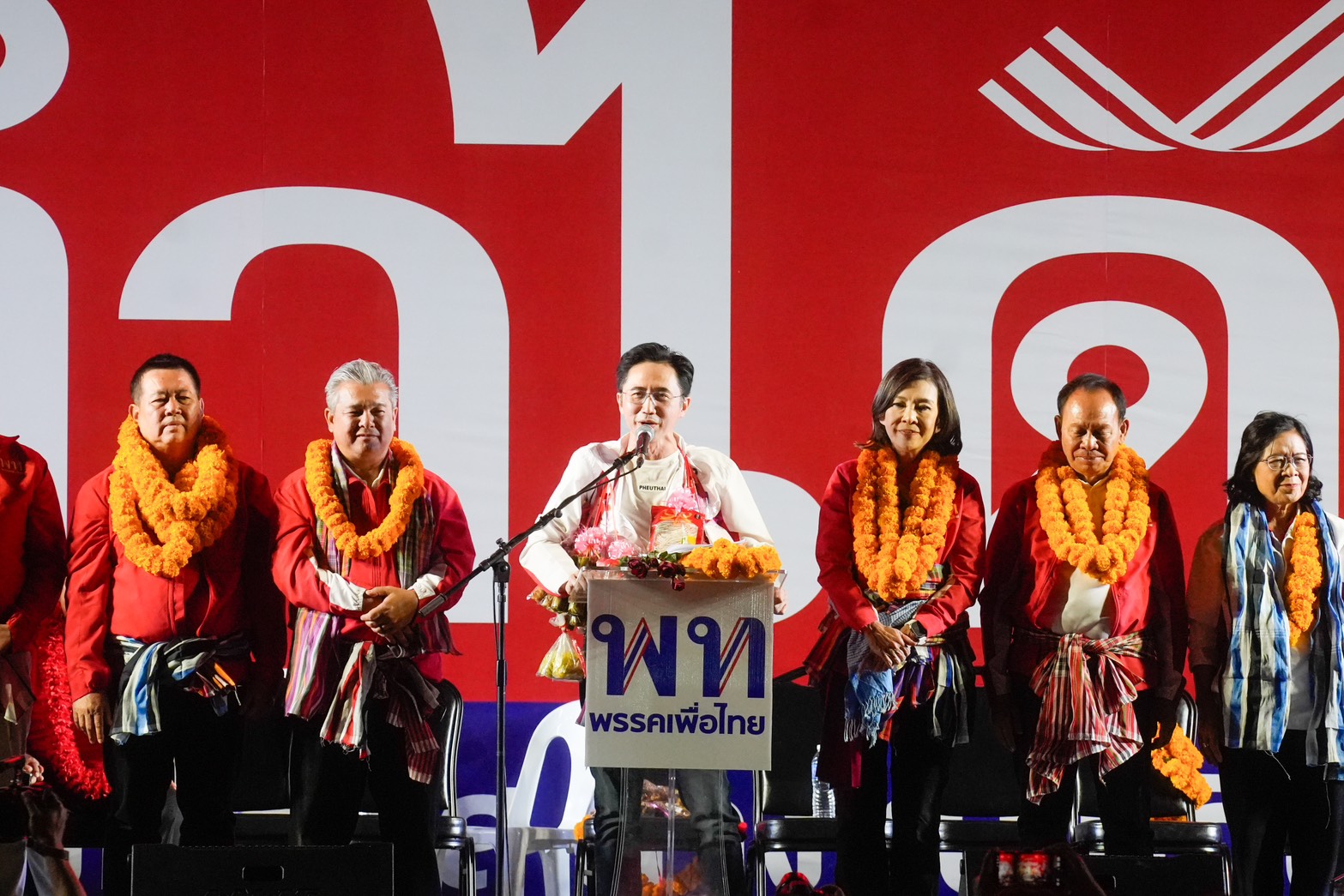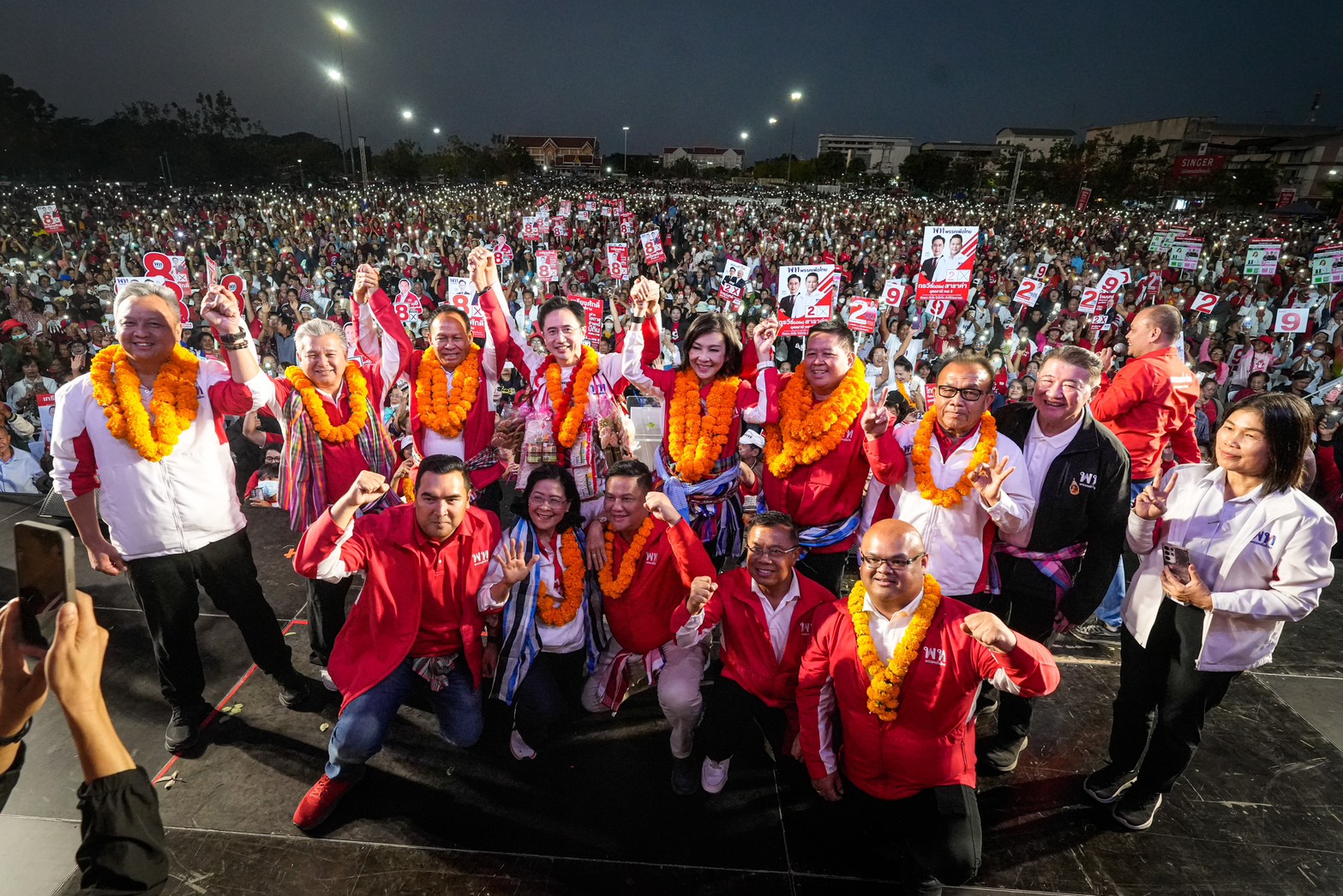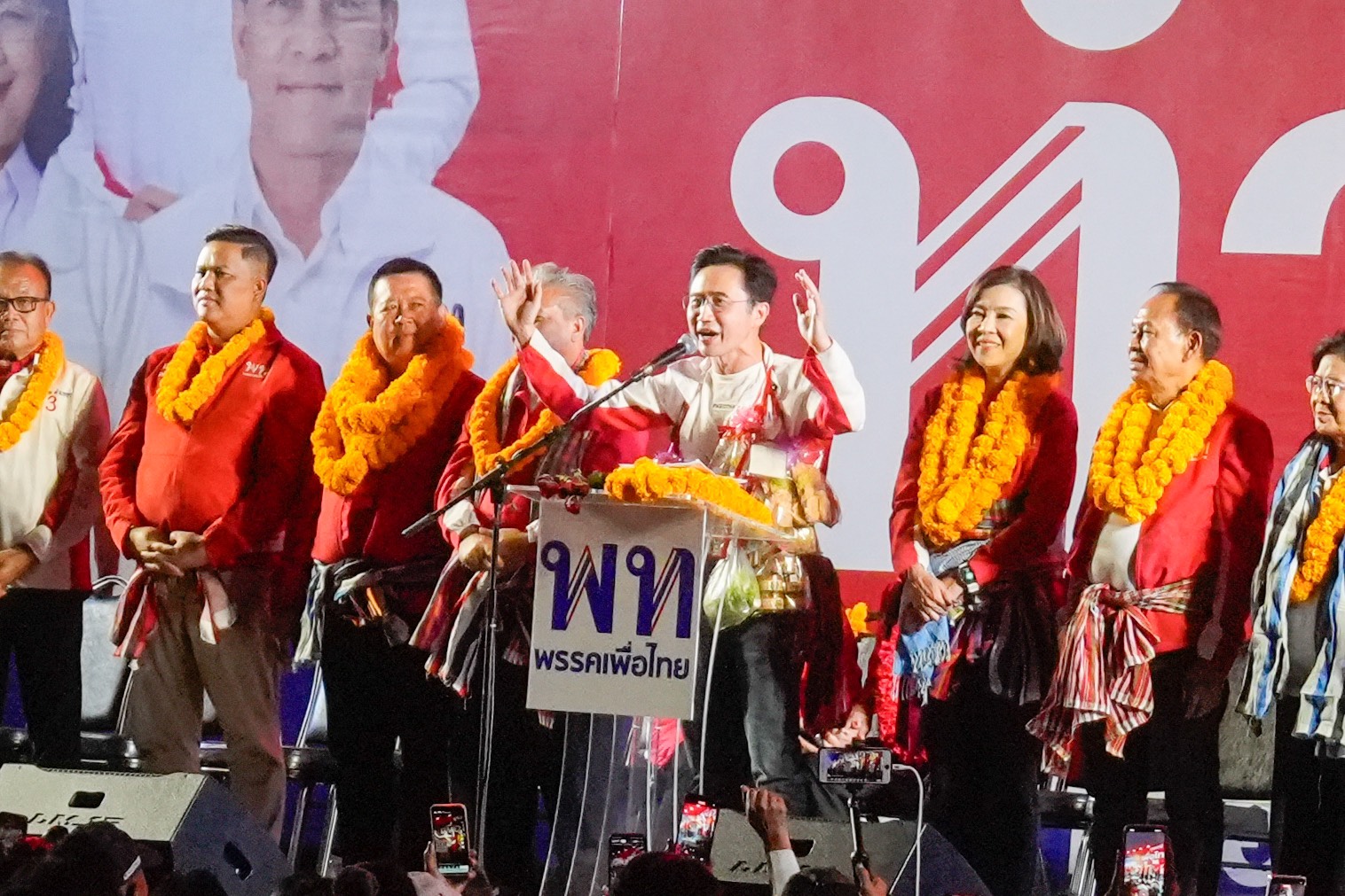 วันนี้ (22 ม.ค.) บรรยากาศการปราศรัยใหญ่ของพรรคเพื่อไทย ณ ทุ่งศรีเมือง จ.อุดรธานี เป็นไปอย่างคึกคักโดยมีประชาชนร่วมนับหมื่นคน เมื่อเวลา 18.15 น. ศ.ดร.ยศชนัน วงศ์สวัสดิ์ แคนดิเดตนายกรัฐมนตรีพรรคเพื่อไทย พร้อมด้วยนายภูมิธรรม เวชยชัย อดีตรองนายกรัฐมนตรี และผู้สมัคร สส.บัญชีรายชื่อพรรคเพื่อไทย และแกนนำพรรคเพื่อไทยจำนวนมากร่วมเวที โดยดวทีที่ทุ่งศรีเมืองในวันนี้ ถือว่าเป็นเวทีสุดท้ายของทริปทัวร์อีสานเหนือ 2 วัน 3 จังหวัด 7 เวที ตั้งแต่จังหวัดบึงกาฬ หนองคาย และอุดรธานี มีพี่น้องนำพวงมาลัยดอกดาวเรือง หมูยอ แจ่วบอง ข้าวแต๋นมามอบให้จนเต็มคอ ทั้งนี้ ในช่วงที่ ศ.ดร.ยศชนัน ถ่ายภาพร่วมกันกับผู้สมัคร สส.อุดรธานี พรรคเพื่อไทย ประชาชนชาวอุดรธานีได้พร้อมใจกันเปิดแฟลชโทรศัพท์เป็นแบ็กกราวนด์ไปด้วย