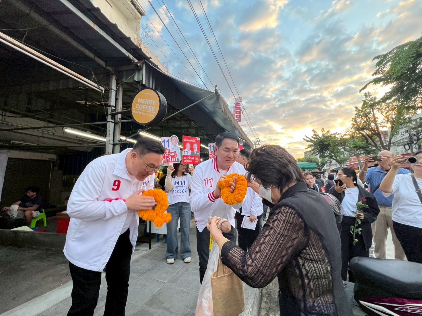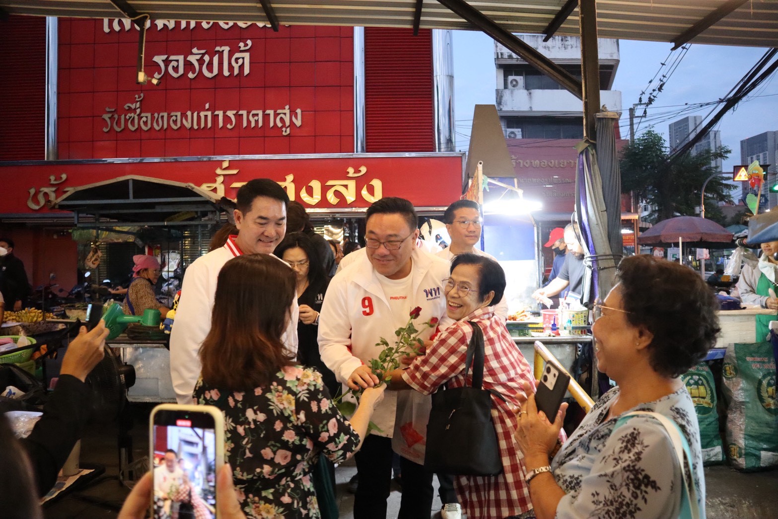 บรรยากาศในช่วงเช้ามีผู้ประกอบการทยอยออกมาตั้งร้าน และมีประชาชนออกมาจับจ่ายใช้สอยอย่างคึกคัก โดยเมื่อคณะพรรคเพื่อไทยเดินทางมาถึง ประชาชนและผู้ประกอบการต่างให้การต้อนรับอย่างอบอุ่น ทั้งการเข้ามาขอถ่ายรูป กอด และมอบดอกไม้ให้กำลังใจ