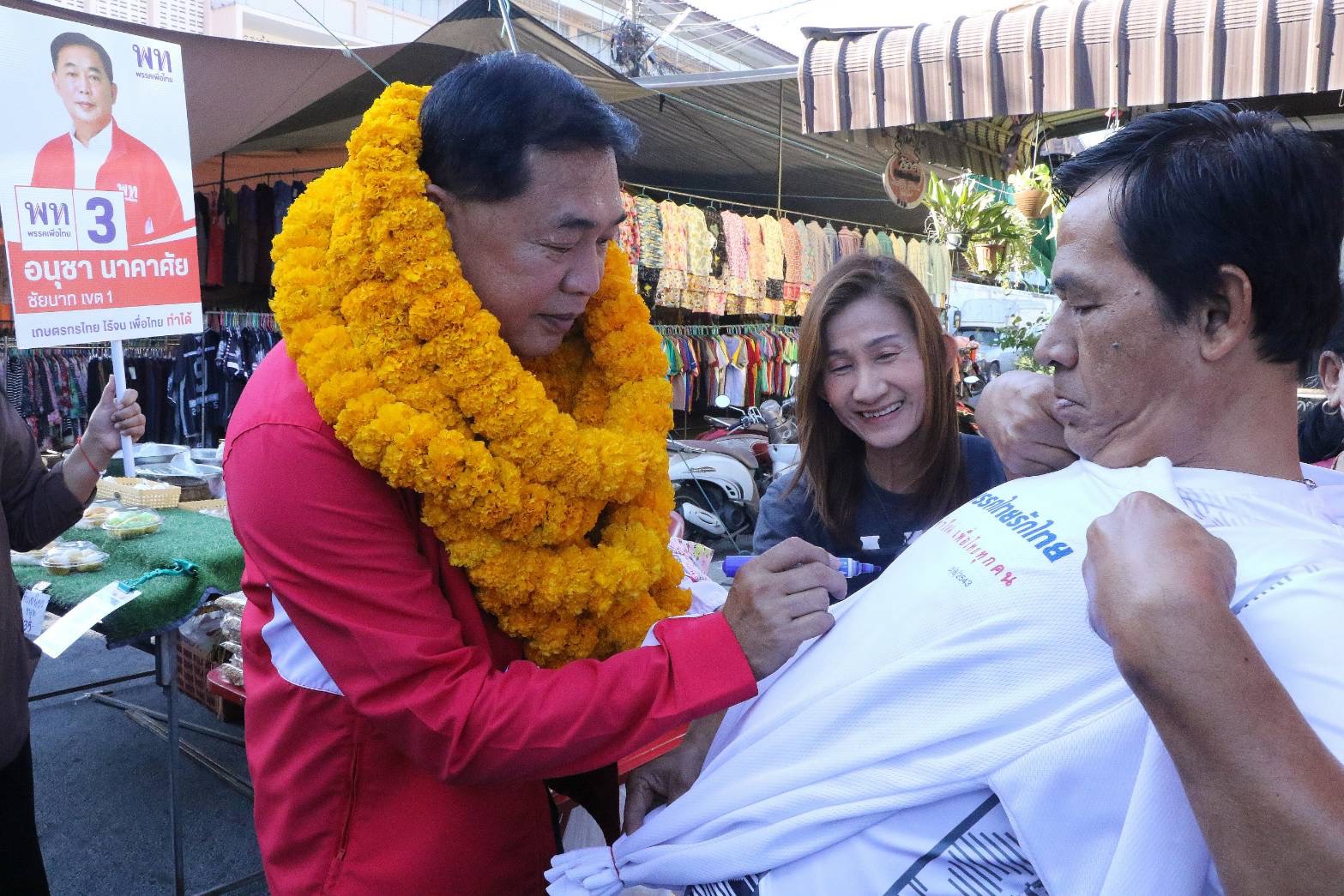 แฟนคลับแน่นให้กำลังใจ “อนุชา นาคาศัย” ผู้สมัคร สส.ชัยนาท เขต 1 เบอร์ 3 เดินตลาด แฟนคลับในพื้นที่ นำเสื้อไทยรักไทยขอลายเซ็น พร้อมยันชูนโยบายพรรคเพื่อไทยที่ทำได้จริงและเกิดผลสำเร็จกับคนไทยมาแล้ว