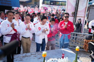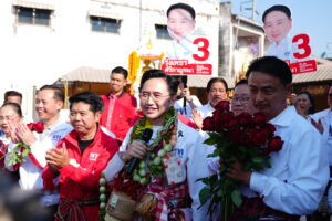 เมื่อเวลา 09.00 น. วันที่ 25 ม.ค. ที่สถานีขนส่งผู้โดยสาร (บขส.) (ตลาดสดเทศบาล) อ.ศรีบุญเรือง จ.หนองบัวลำภู ศ.ดร.ยศชนัน วงศ์สวัสดิ์ แคนดิเดตนายกรัฐมนตรี พรรคเพื่อไทย พร้อมด้วยนายประเสริฐ จันทรรวงทอง เลขาธิการพรรคและผู้สมัคร สส.บัญชีรายชื่อ, นายจักรพงษ์ แสงมณี รองหัวหน้าพรรคและผู้สมัคร สส.บัญชีรายชื่อ ลงพื้นที่ช่วยหาเสียงให้นายรุ่งเพชร ศรีกาญจนา ผู้สมัคร สส.หนองบัวลำภู เขต 2 เบอร์ 3