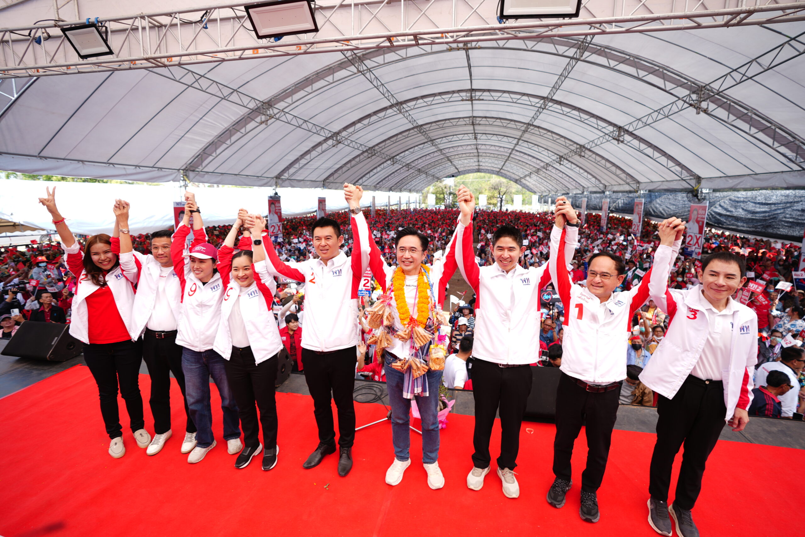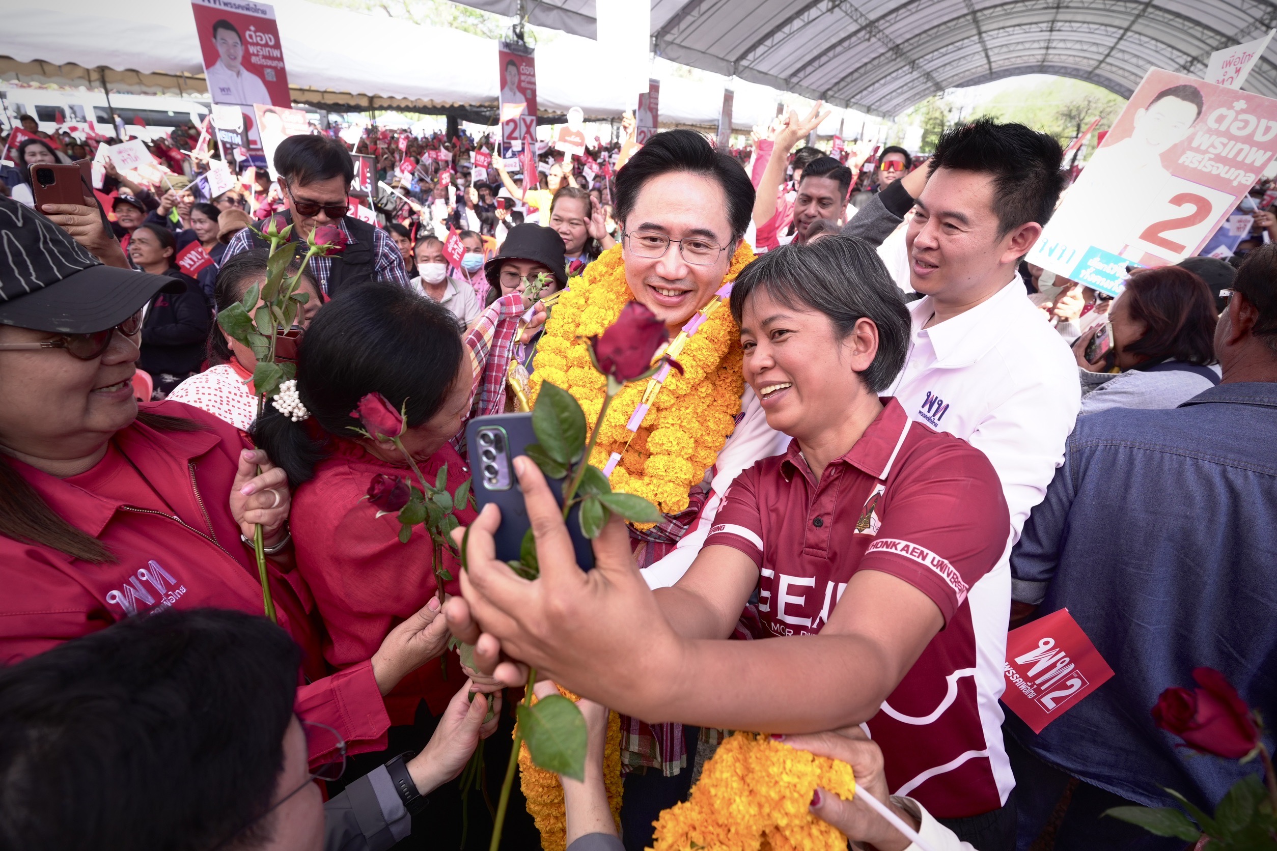 ด้านนายณัฐวุฒิ ใสยเกื้อ กล่าวว่า ที่ผ่านมาพรรคเพื่อไทยมี สส.เขตนี้ทุกสมัย และตนเคยมาปราศรัยช่วยหาเสียงตั้งแต่ยุคนายกฯ สมัคร สุนทรเวช มาจนยุคนายกฯ เศรษฐา-แพทองธาร ซึ่งพี่น้องต่างสนับสนุนพรรคเพื่อไทยกันมาโดยตลอด