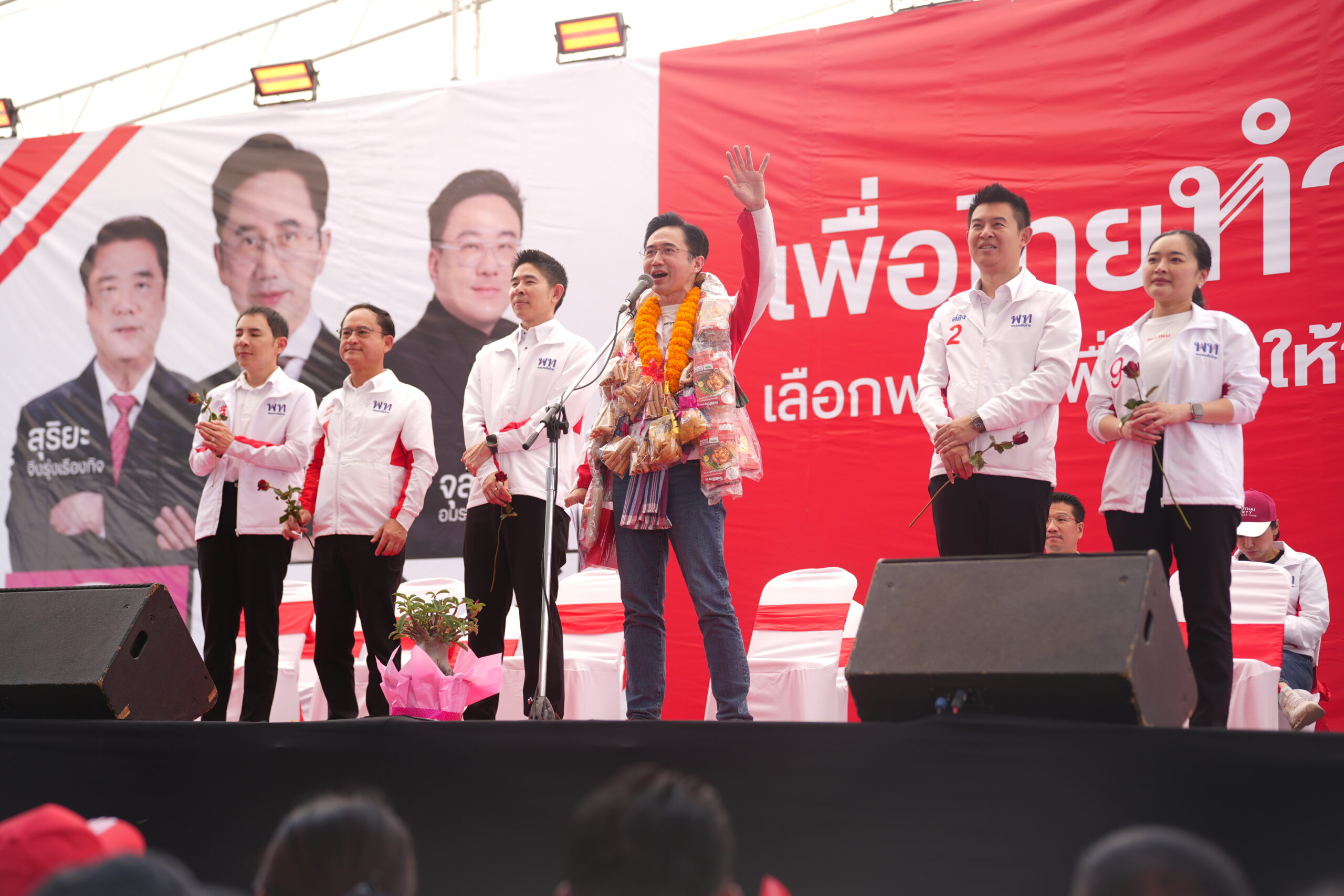 เวลา 09.30 น. วันที่ 26 ม.ค. 2569 ที่ลานกิจกรรมเอนกประสงค์ หน้าสระใหญ่ อ.บัวใหญ่ จ.นครราชสีมา พรรคเพื่อไทยเปิดเวทีปราศรัยช่วยหาเสียงให้ นางพัชราวรรณ ภิญโญ ผู้สมัคร สส.นครราชสีมา เขต 6 เบอร์ 1 พรรคเพื่อไทย นำโดย ศ.ดร.ยศชนัน วงศ์สวัสดิ์ แคนดิเดตนายกรัฐมนตรี พรรคเพื่อไทย นายประเสริฐ จันทรรวงทอง เลขาธิการพรรคเพื่อไทย น.ส.สุดาวรรณ หวังศุภกิจโกศล รองหัวหน้าพรรคเพื่อไทย นายจักรพงษ์ แสงมณี รองหัวหน้าพรรคเพื่อไทย น.ส.ลิณธิภรณ์ วริณวัชรโรจน์ รองเลขาธิการพรรคเพื่อไทย และนายณัฐวุฒิ ใสยเกื้อ ผู้ช่วยหาเสียงพรรคเพื่อไทย