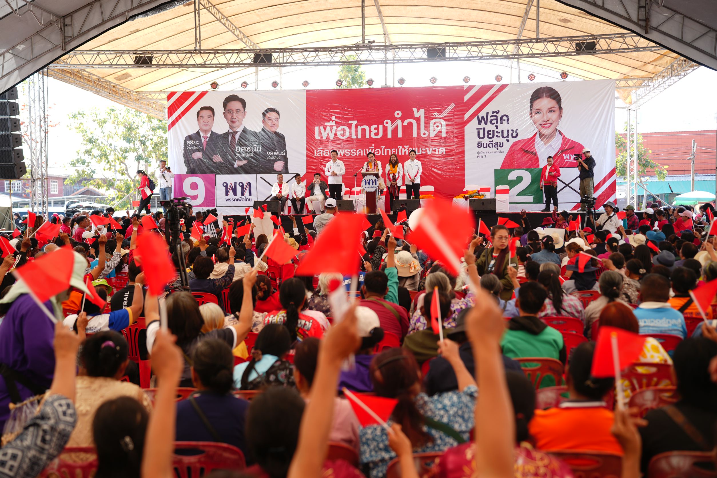 วันที่ 26 มกราคม 2569 บรรยากาศการลงพื้นที่หาเสียงของพรรคเพื่อไทย ในจังหวัดนครราชสีมา เป็นไปอย่างคึกคัก โดย ศ.ดร.ยศชนัน วงศ์สวัสดิ์ แคนดิเดตนายกรัฐมนตรี พรรคเพื่อไทย พร้อมด้วยแกนนำพรรค ได้เดินทางไปพบปะประชาชนและขึ้นเวทีปราศรัย 2 จุดหลักในช่วงบ่าย ได้แก่ บริเวณสนามหน้าที่ว่าการอำเภอประทาย เพื่อช่วยหาเสียงให้กับ นางสาวปิยะนุช ยินดีสุช ผู้สมัคร ส.ส. เขต 7 เบอร์ 2 และต่อมาที่สนามหน้าที่ว่าการอำเภอชุมพวง เพื่อช่วย นายนิกร โสมกลาง ผู้สมัคร ส.ส. เขต 8 เบอร์ 1 และ นางนารดา อึ้งสวัสดิ์ ผู้สมัคร ส.ส. เขต 9 เบอร์ 4 ท่ามกลางประชาชนที่มารรอต้อนรับอย่างอุ่นหนาฝาคั่ง