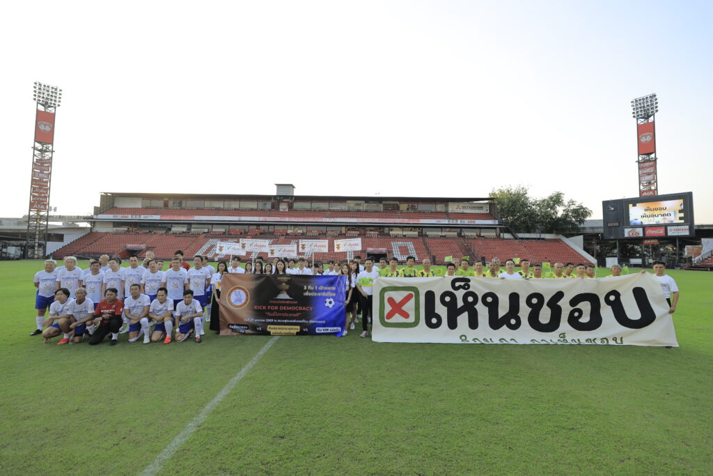 เมื่อวันที 27 มกราคม 2569 ผู้สื่อข่าวรายงานจากสนามฟุตบอล ธันเดอร์โดม สเตเดียม เมืองทองธานี ว่า เมื่อช่วงค่ำที่ผ่านมา นายจาตุรนต์ ฉายแสง ประธานคณะกรรมการรณรงค์สื่อสารประชามติและรัฐธรรมนูญฉบับประชาชน พรรคเพื่อไทย และรักษาการหัวหน้าทีมฟุตบอล VIP แปดริ้ว พร้อมกับผู้สมัคร สส.และสมาชิกพรรคเพื่อไทย อาทิ ดร.วิโชติ วัณโณ, ดร.จำนงค์ ไชยมงคล และนายภัทรพล ฐิติภวัตสกุล เข้าร่วมกิจกรรมเตะฟุตบอลกระชับมิตร “Kick for Democracy: 3 ทีม 1 เป้าหมาย เดินหน้าสู่รัฐธรรมนูญฉบับใหม่” เพื่อรณรงค์ให้ประชาชน “เห็นชอบ” การจัดทำรัฐธรรมนูญฉบับใหม่ โดยมีกลุ่มเยาวชน นิสิต นักศึกษา ที่สนใจร่วมให้กำลังใจ พร้อมเปร่งเสียง “8 กุมภา กาเห็นชอบ” ด้านข้างขอบสนามด้วย