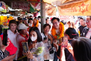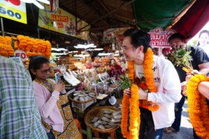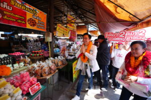 จากนั้น ศ.ดร.ยศชนัน และคณะ เดินข้ามฝั่งไปยังตลาดหน้าวัด หาเสียงขอคะแนนกับพ่อค้าแม่ค้า โดยพ่อค้าแม่ค้าได้มอบพวงมาลัย และของดีของกิน ประจำจังหวัดฉะเชิงเทรา เช่น ขนมจาก ผลไม้แช่อิ่ม ข้าวหลาม เป็นต้น และได้เดินทางต่อไปยังตลาดนัดวินเทจ จังหวัดฉะเชิงเทรา เพื่อขึ้นเวทีปราศรัยหาเสียงต่อไป