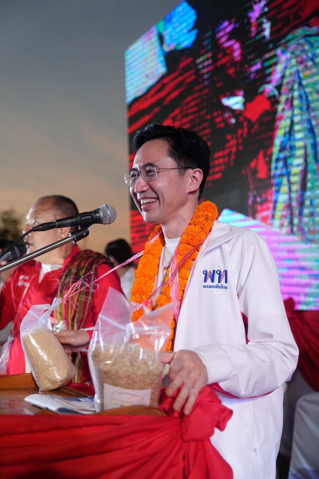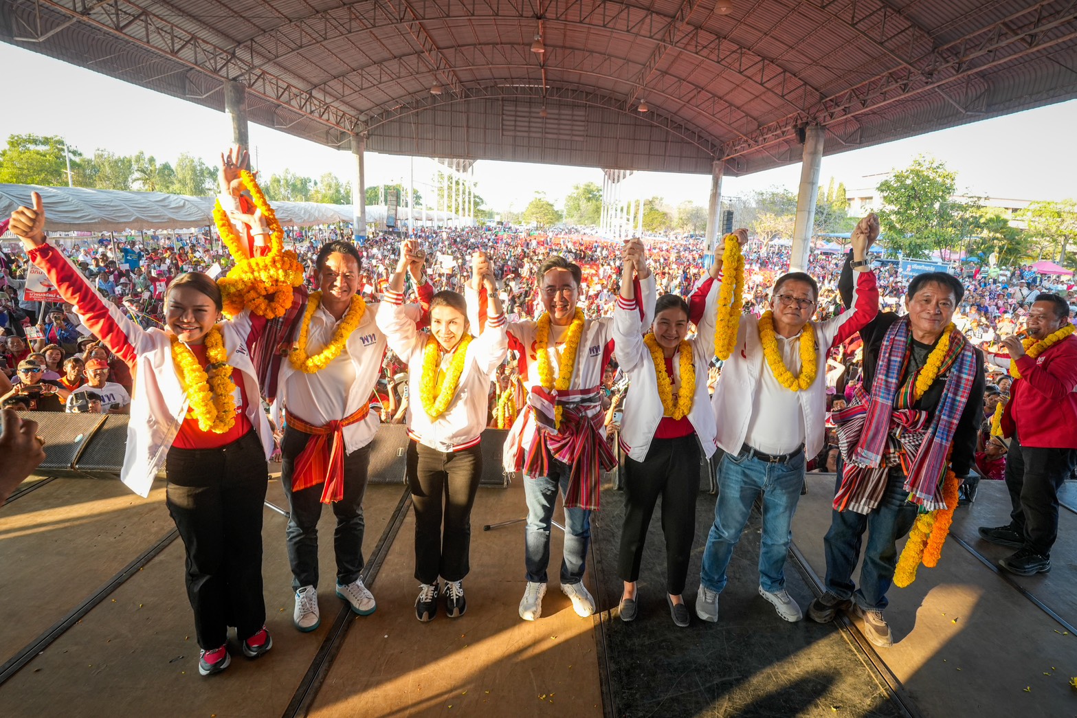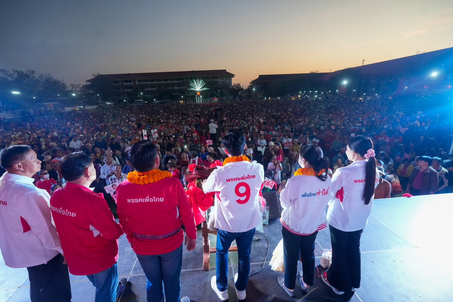 ช่วงเย็นวันนี้ (4 ก.พ.) พรรคเพื่อไทยเปิดเวทีปราศรัย 2 เวทีสุดท้าย ที่จังหวัดร้อยเอ็ด ได้แก่ เวทีอำเภอเกษตรวิสัย ณ วิทยาลัยเทคนิคเกษตรวิสัย และเวทีอำเภอสุวรรณภูมิ มีพี่น้องประชาชนเข้าร่วมรับฟังร่วมหมื่นคน ท่ามกลางบรรยากาศอบอุ่นและคึกคัก