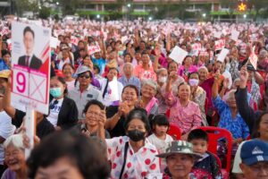 พรรคเพื่อไทยปิดฉากการลงพื้นที่ภาคอีสาน ภายใต้แคมเปญ “3 วัน 8 จังหวัด 16 จุด” อย่างคึกคัก โดยมี ศ.ดร.ยศชนัน วงศ์สวัสดิ์ แคนดิเดตนายกรัฐมนตรี พรรคเพื่อไทย นำทีมแกนนำพรรคชุดใหญ่ ประกอบด้วย นางสาวลิณธิภรณ์ วริณวัชรโรจน์ รองเลขาธิการพรรคและผู้สมัคร สส.บัญชีรายชื่อ และ นายณัฐวุฒิ ใสยเกื้อ ผู้ช่วยหาเสียง เดินสายพบปะประชาชนมาแล้วรวม 14 จุด ครอบคลุมจังหวัดสกลนคร นครพนม มุกดาหาร อำนาจเจริญ อุบลราชธานี ศรีสะเกษ และสุรินทร์
