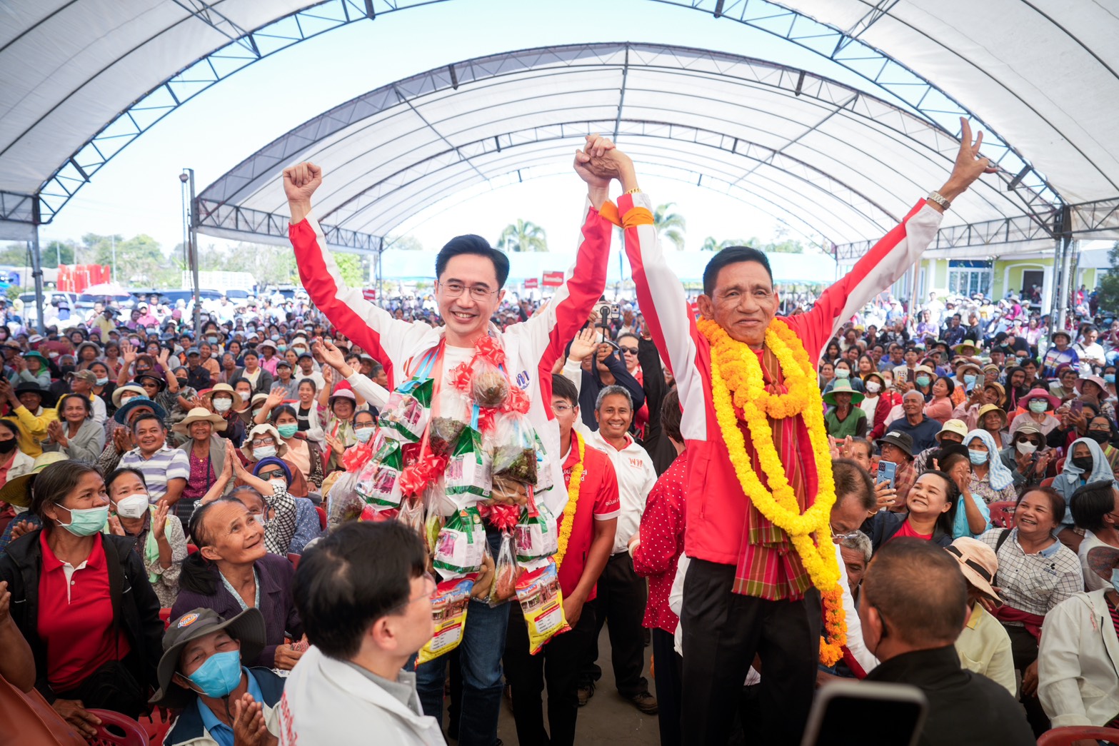 ด้านนายณัฐวุฒิ กล่าวว่าที่จริงพรรคเพื่อไทยมีผู้ช่วยหาเสียง 2 คนหนึ่งคือนายณัฐวุฒิ อีกคนหนึ่งเขาหมายมั่นปั้นมือว่าจะมาเจอพี่น้องให้ได้คือ “ทักษิณ ชินวัตร” ยังรักทักษิณไหม? ยังเชียร์ทักษิณไหม? วันนี้เขาเอาทักษิณไปขังไม่ให้เจอพี่น้อง ให้พี่น้องช่วยกันกาคะแนนไปให้ถึงทักษิณได้ไหม นั้นคือคนก่อตั้งพรรคไทยรักไทย เป็นนายกรัฐมนตรีที่ได้ สส.สูงสุด มีผลงานให้คนยากคนจนมากที่สุด อย่างที่ไม่มีใครเคยทำได้มาก่อน เป็นนายกรัฐมนตรีที่ทำให้นโยบายบนป้ายหาเสียงให้มีชีวิต ป้ายหาเสียงคนอื่นป้ายหาเสียงแต่พอ ดร.ทักษิณ เป็นนายกฯ นโยบายบนป้ายหาเสียงก็กลายเป็นนโยบายของรัฐบาลที่ทำได้จริง