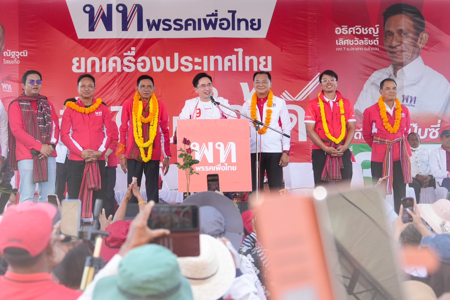 บรรยากาศการลงพื้นที่ภาคอีสานของ พรรคเพื่อไทย “3 วัน 8 จังหวัด 16 จุด” เป็นไปอย่างคึกคัก นำโดย ศ.ดร.ยศชนัน วงศ์สวัสดิ์ แคนดิเดตนายกรัฐมนตรี พร้อมด้วย นางสาวลิณธิภรณ์ วริณวัชรโรจน์ ผู้สมัคร สส.บัญชีรายชื่อ และรองเลขาธิการพรรคเพื่อไทย นายณัฐวุฒิ ใสยเกื้อ ผู้ช่วยหาเสียง และแกนนำชุดใหญ่ โดยหลังจากเดินสายมาแล้ว 12 จุด ตั้งแต่สกลนคร นครพนม มุกดาหาร อำนาจเจริญ อุบลราชธานี และ จ.ศรีสะเกษ
