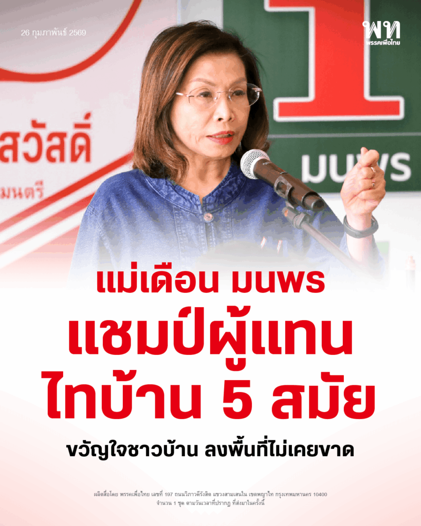 ‘แม่เดือน มนพร’ ขึ้นชั้นผู้แทนไทบ้าน แชมป์ 5 สมัย กวาด 5 หมื่นแต้ม เพราะหัวใจคือประชาชน