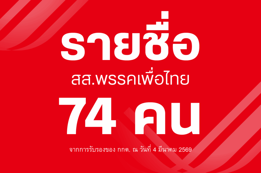 โดยพรรคเพื่อไทยมีจำนวน สส.ทั้งหมด 74 คน (ข้อมูล ณ วันที่ 4 มีนาคม 2569) ประกอบด้วย