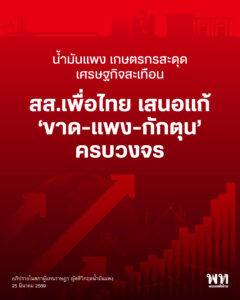 น้ำมันแพง เกษตรกรสะดุด เศรษฐกิจสะเทือน สส.เพื่อไทย เสนอแก้ ‘ขาด-แพง-กักตุน’ ครบวงจร