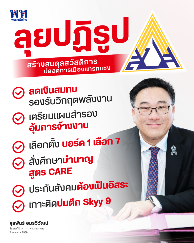 #พรรคเพื่อไทย #จุลพันธ์อมรวิวัฒน์ #กระทรวงแรงงาน #ประกันสังคม