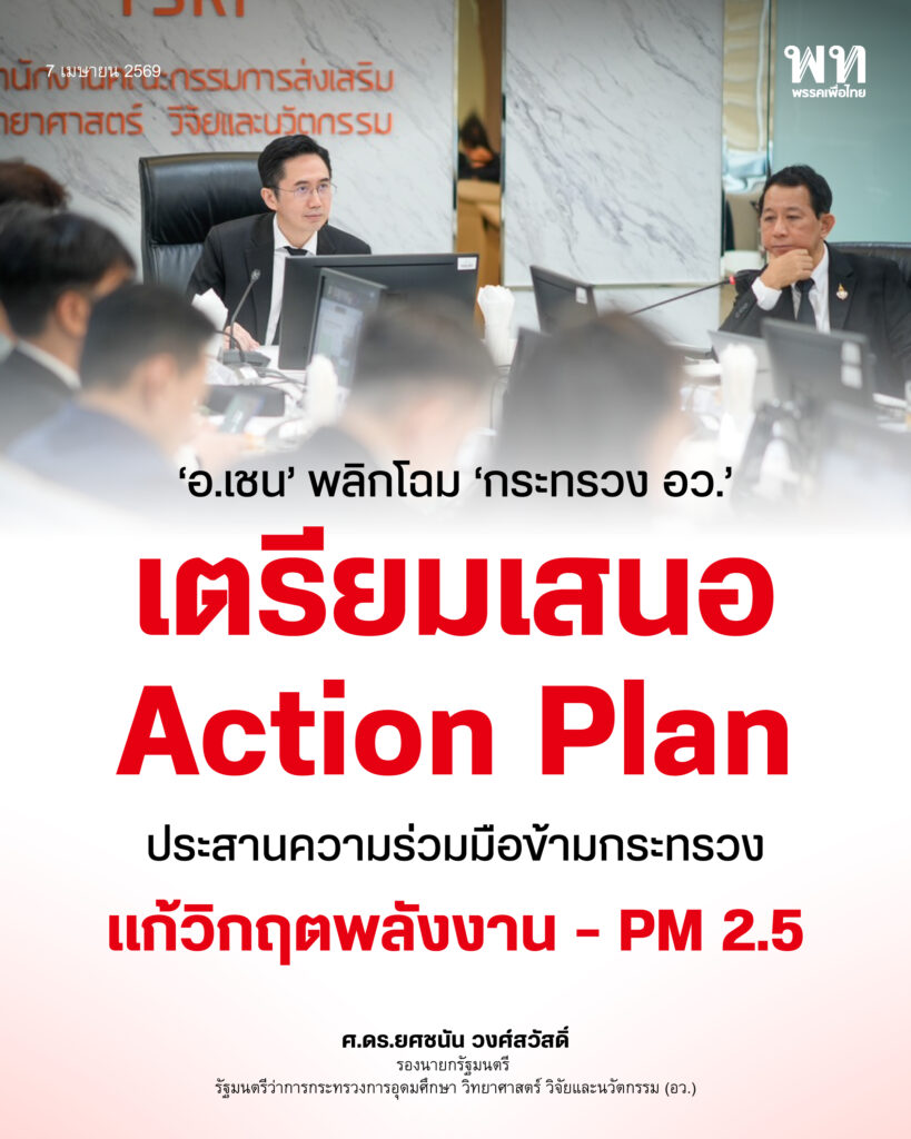 วันนี้ (7 เม.ย.) ณ สำนักงานคณะกรรมการส่งเสริมวิทยาศาสตร์ วิจัยและนวัตกรรม (สกสว.) ศ.ดร.ยศชนัน วงศ์สวัสดิ์ รองนายกรัฐมนตรี และรัฐมนตรีว่าการกระทรวงการอุดมศึกษา วิทยาศาสตร์ วิจัยและนวัตกรรม (อว.) ได้เข้าหารือเร่งด่วนเพื่อนำผลงานวิจัยและนวัตกรรมมาแก้ไขปัญหาวิกฤตพลังงานและฝุ่น PM2.5 โดยระบุว่าสถานการณ์ในปัจจุบันมีความเร่งด่วนและส่งผลกระทบต่อประชาชนอย่างกว้างขวาง โดยหลังจากที่สามารถปฏิบัติหน้าที่ตามกฎหมายได้แล้ว จะใช้กลไกของกองทุนส่งเสริมวิทยาศาสตร์ วิจัย และนวัตกรรม (กองทุน ววน.) เป็นหัวใจหลักในการขับเคลื่อนแผนงานวิจัยที่มีอยู่ให้เกิดผลในภาคปฏิบัติอย่างรวดเร็วที่สุด