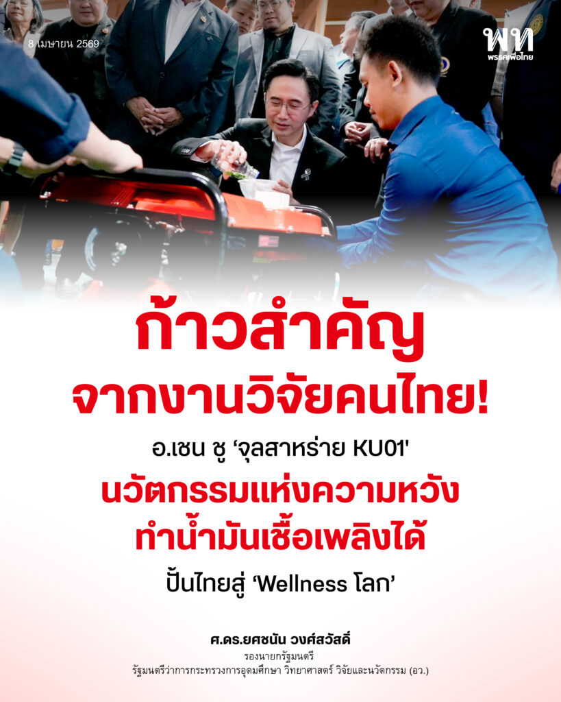 วันนี้ (8 เม.ย.) ศ.ดร.ยศชนัน วงศ์สวัสดิ์ รองนายกรัฐมนตรี และรัฐมนตรีว่าการกระทรวงการอุดมศึกษา วิทยาศาสตร์ วิจัยและนวัตกรรม (อว.) ร่วมเปิดตัวโครงการผลิตวัตถุดิบอาหารสัตว์และเชื้อเพลิงอากาศยานยั่งยืน (SAF) จากจุลสาหร่าย Chlorella vulgaris KU01 โดยระหว่างการแถลงข่าวเปิดตัว ศ.ดร.ยศชนัน ระบุว่า ประเทศไทยจำเป็นต้องมีเครื่องยนต์ทางเศรษฐกิจใหม่เพื่อพาชาติก้าวข้าม “กับดักรายได้ปานกลาง” ที่ติดหล่มมาอย่างยาวนาน ความหวังสำคัญคือการผลักดันยุทธศาสตร์ Wellness ที่เชื่อมโยงภาคเกษตร อุตสาหกรรม และภาคบริการเข้าด้วยกัน เพื่อยกระดับประเทศไทยให้กลายเป็น “สวิตเซอร์แลนด์แห่งเอเชีย” ที่สมบูรณ์แบบและมีความมั่งคั่งอย่างยั่งยืน