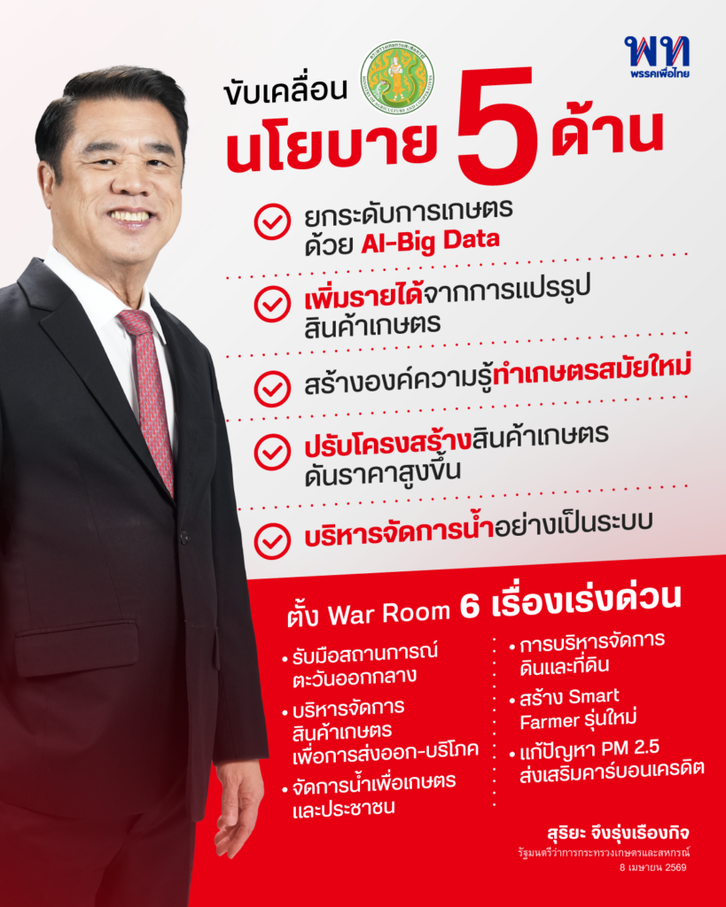 #เพื่อไทย #สุริยะจึงรุ่งเรืองกิจ #เกษตร