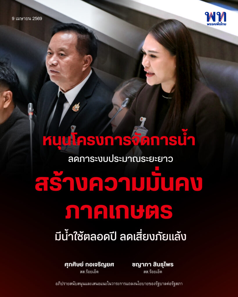 #เพื่อไทย #ศุภศิษย์กอเจริญยศ #ชญาภาสินธุไพร #บริหารจัดการน้ำ