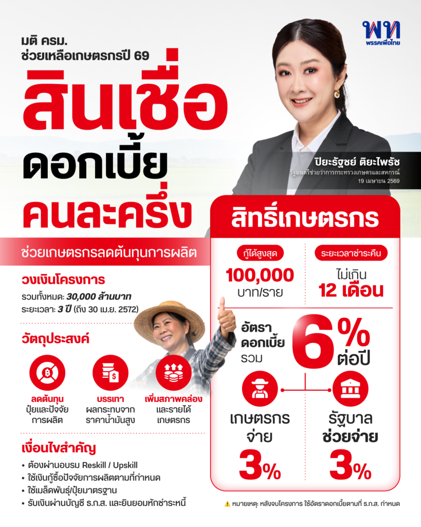 #พรรคเพื่อไทย #ปิยะรัฐชย์ติยะไพรัช #สินเชื่อดอกเบี้ยคนละครึ่ง #เกษตรกร