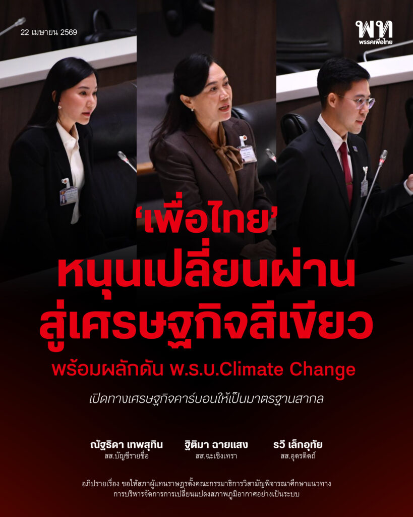 #เพื่อไทย #ณัฐธิดาเทพสุทิน #ฐิติมาฉายแสง #รวีเล็กอุทัย #ClimateChange