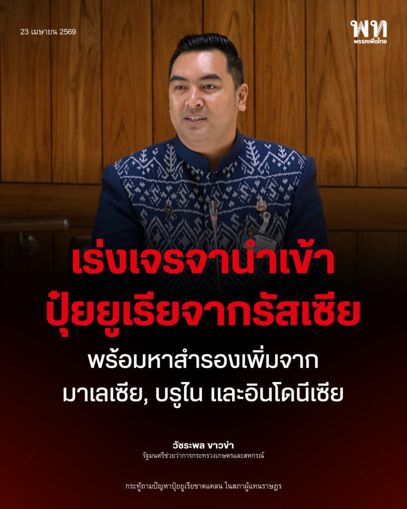 ‘วัชระพล’ แจงปัญหาราคาปุ๋ยพุ่ง กระทบเกษตรกรทั่วประเทศ เร่งเจรจานำเข้ารัสเซีย-ดันใช้ปุ๋ยทางเลือก