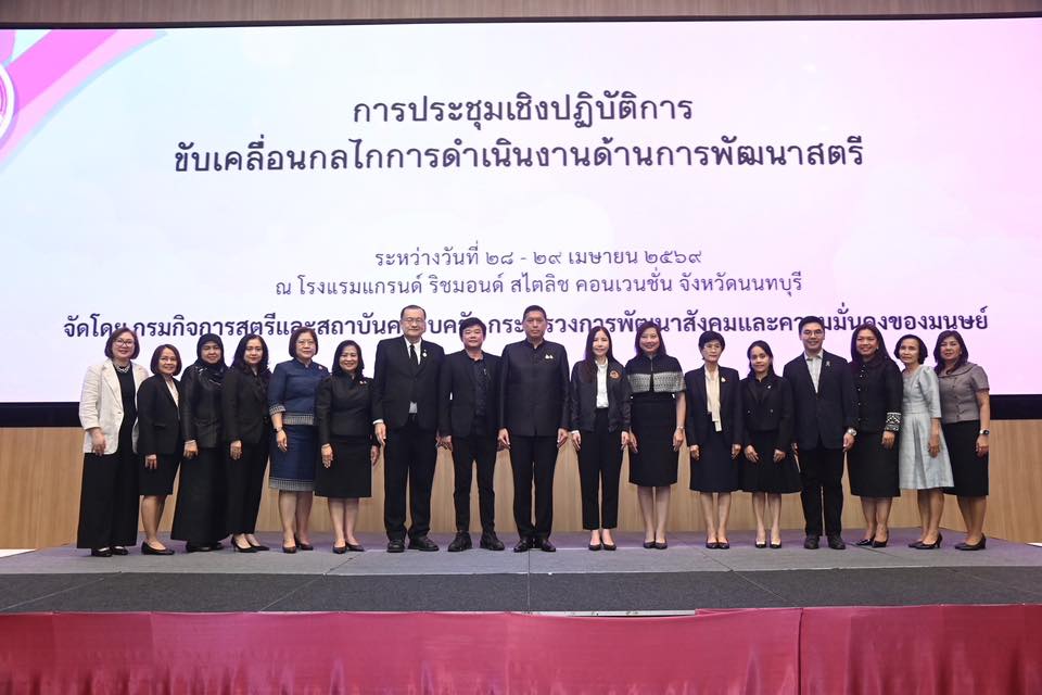 วันที่ 28 เมษายน 2569 นายนิกร โสมกลาง รัฐมนตรีว่าการกระทรวงการพัฒนาสังคมและความมั่นคงของมนุษย์ (รมว.พม.) เป็นประธานเปิดการประชุมเชิงปฏิบัติการขับเคลื่อนกลไกการดำเนินงานด้านการพัฒนาสตรี สำหรับผู้บริหารด้านการเสริมสร้างบทบาทหญิงชาย (Chief Gender Equality Officer : CGEO) และเจ้าหน้าที่ศูนย์ประสานงานด้านความเสมอภาคระหว่างหญิงชาย (Gender Focal Point : GFP) จากหน่วยงานภาครัฐ ระดับกระทรวง กรม หรือเทียบเท่า โดยมี นางจตุพร โรจนพานิช อธิบดีกรมกิจการสตรีและสถาบันครอบครัว กล่าวรายงาน พร้อมด้วย คณะผู้บริหารกระทรวง พม. และ คณะผู้บริหารและเจ้าหน้าที่หน่วยงานที่เกี่ยวข้องเข้าร่วม ณ โรงแรมแกรนด์ ริชมอนด์ สไตลิช คอนเวนชั่น จังหวัดนนทบุรี