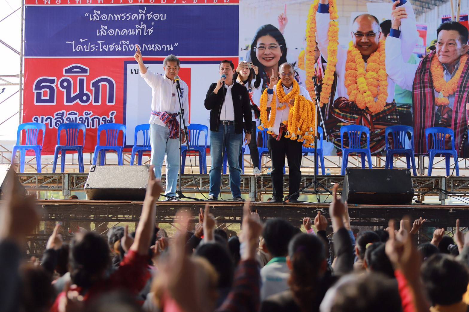 (3 ธ.ค. 62) คุณหญิงสุดารัตน์ เกยุราพันธุ์ ประธานยุทธศาสตร์พรรคเพื่อไทย นำทีมพรรคเพื่อไทยลงพื้นที่ปราศรัยใหญ่ ที่อำเภอมัญจาคีรี จังหวัดขอนแก่น เพื่อช่วยนายธนิก มาสีพิทักษ์ ผู้สมัคร หาเสียงในการเลือกตั้งซ่อม ส.ส. เขต 7 ซึ่งมี ส.ส. พรรคเพื่อไทย และคณะผู้บริหารพรรค อาทิ นายทนุศักดิ์ เล็กอุทัย ผู้อำนวยการพรรค น.อ.อนุดิษฐ์ นาครทรรพ เลขาธิการพรรค นายสุทิน คลังแสง ประธานคณะกรรมการประสานงานพรรคร่วมฝ่ายค้าน นายบัลลังก์ อรรณนพพร นางมุกดา พงษ์สมบัติ นายภควัต ศรีสุรพล ส.ส. ขอนแก่น นายไพจิต ศรีวรขาน ส.ส. นครพนม น.ส.สกุณา สาระนันท์ ส.ส. สกลนคร นางอาภรณ์ สาราคำ ส.ส. อุดรธานี นางบุญรื่น ศรีธเรศ ส.ส. กาฬสินธุ์ นพ.จาตุรงค์ เพ็งนรพัฒน์ ส.ส. ศรีสะเกษ และนางพรเพ็ญ บุญศิริวัฒนกุล ส.ส. ชัยภูมิ มาช่วยนายธนิกหาเสียงอีกด้วย ซึ่งบรรยากาศเป็นไปอย่างคึกคัก มีพี่น้องประชาชนผู้สนับสนุนพรรคเพื่อไทยสนใจรับฟังการปราศรัยอย่างล้นหลาม