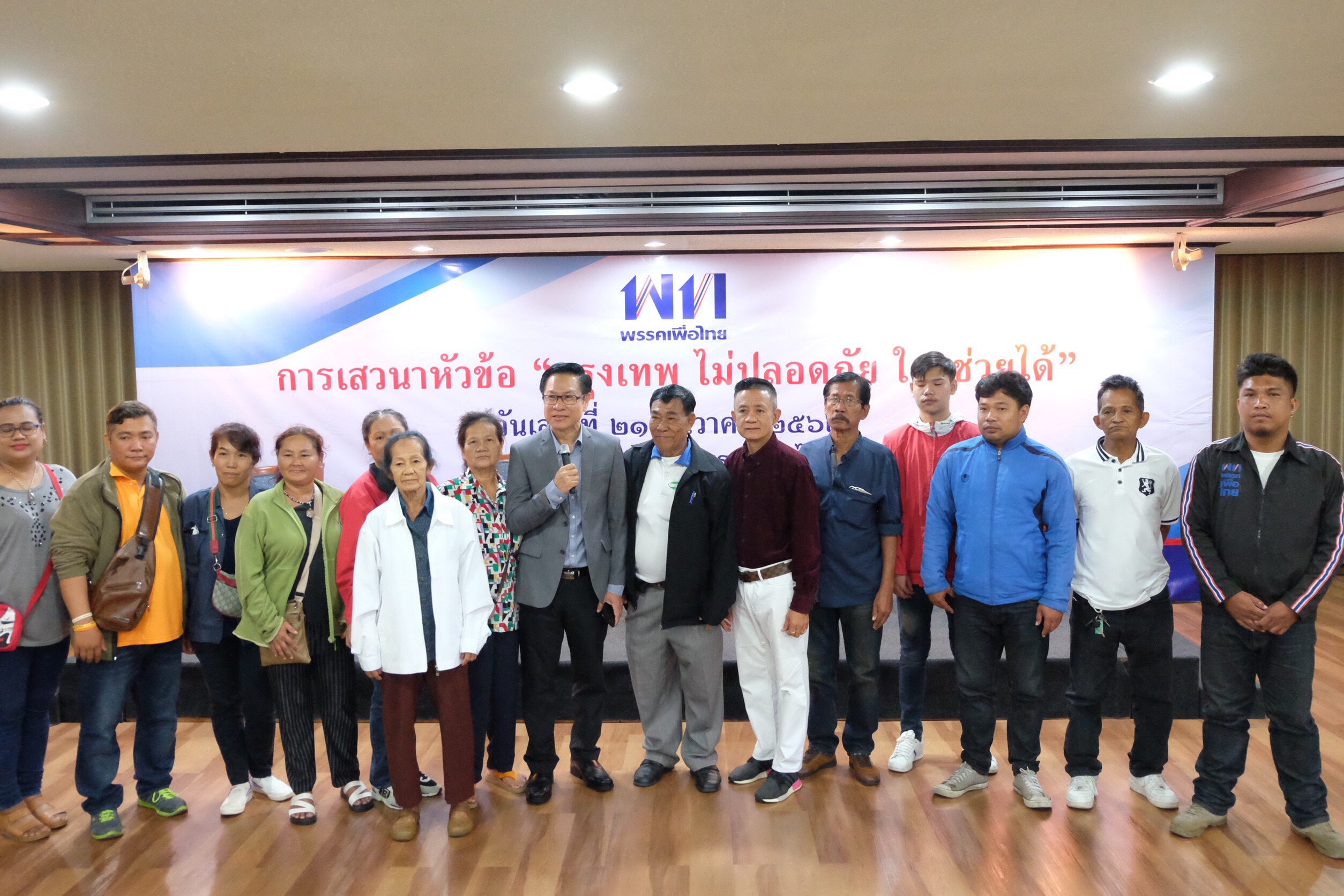 (21 ธ.ค. 62) พรรคเพื่อไทย จัดงานเสวนา “กรุงเทพไม่ปลอดภัยใครช่วยได้” นำโดย นายวิชาญ มีนชัยนันท์ รองหัวหน้าพรรคเพื่อไทย และประธานภาค กทม. พร้อมด้วย นายจิรายุ ห่วงทรัพย์ รองเลขาธิการพรรค นายตรีรัตน์ ศิริจันทโรภาส เลขาธิการกลุ่มเพื่อไทยพลัส และผู้แทนจากสำนักงาน ป.ป.ส. กทม. กองบัญชาการตำรวจนครบาล มูลนิธิกู้ภัยร่มไทร และนักสังคมสงเคราะห์ โดยมีสมาชิกพรรคและประชาชนผู้สนใจเข้าร่วมแลกเปลี่ยนความคิดเห็นและมุมมองในการแก้ไขปัญหาร่วมกันจำนวนมาก