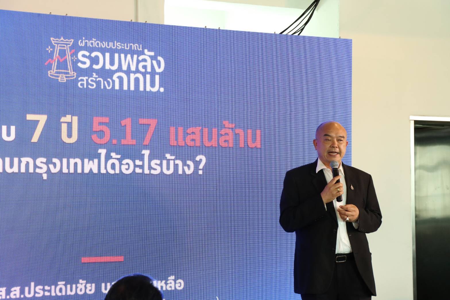 นายประเดิมชัย บุญช่วยเหลือ ส.ส. กทม. พรรคเพื่อไทย กล่าวว่า การเปลี่ยนแปลงการใช้งบประมาณของกรุงเทพฯ ย้อนหลังไป 7 ปี เห็นได้ว่าใช้งบประมาณไปกว่า 5 แสนล้านบาท แต่ยังพบปัญหาที่ซ้ำซาก ขาดการบูรณาการเพื่อนำไปสู่การแก้ไขปัญหา รวมทั้งยังมีหลายโครงการที่ไม่ก่อให้เกิดประโยชน์กับพี่น้องประชาชน ทำให้สูญเสียงบประมาณจำนวนมาก เช่น โครงการจัดซื้อรถเรือดับเพลิงกว่า 6,000 ล้านบาท แต่ไม่สามารถนำมาใช้ประโยชน์ได้ , โครงการจัดสร้างโรงฆ่าสัตว์ซึ่งใช้งบกว่า 900 ล้านบาท แต่ไม่ถูกนำมาใช้ให้เกิดประโยชน์ ปัจจุบันกลายเป็นพื้นที่แพร่เชื้อโรคต่างๆ นอกจากนี้ยังมีปัญหาน้ำท่วมซ้ำซาก ปัญหาการเก็บขยะไม่ทัน ปัญหาการบำบัดน้ำเสีย รวมถึงปัญหาด้านสาธารณสุข แม้จะมีการลงทุนต่อเนื่อง และใช้งบประมาณมหาศาลก็ตาม