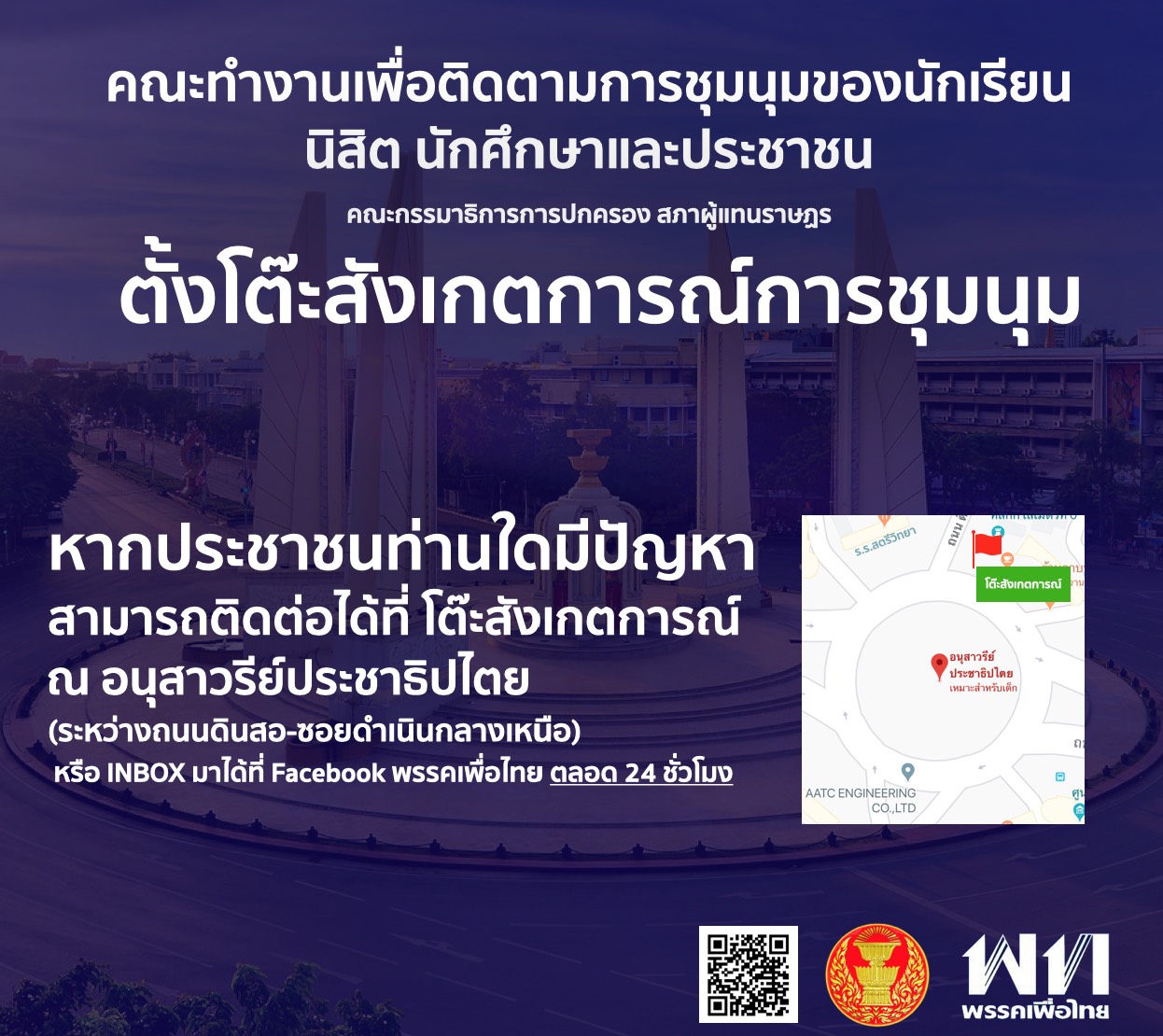 คณะทำงานติดตามการชุมนุมฯ ตั้งโต๊ะสังเกตการณ์ที่อนุสาวรีย์ประชาธิปไตย พร้อมประสานเจ้าหน้าที่ช่วยดูแลความสงบเรียบร้อย